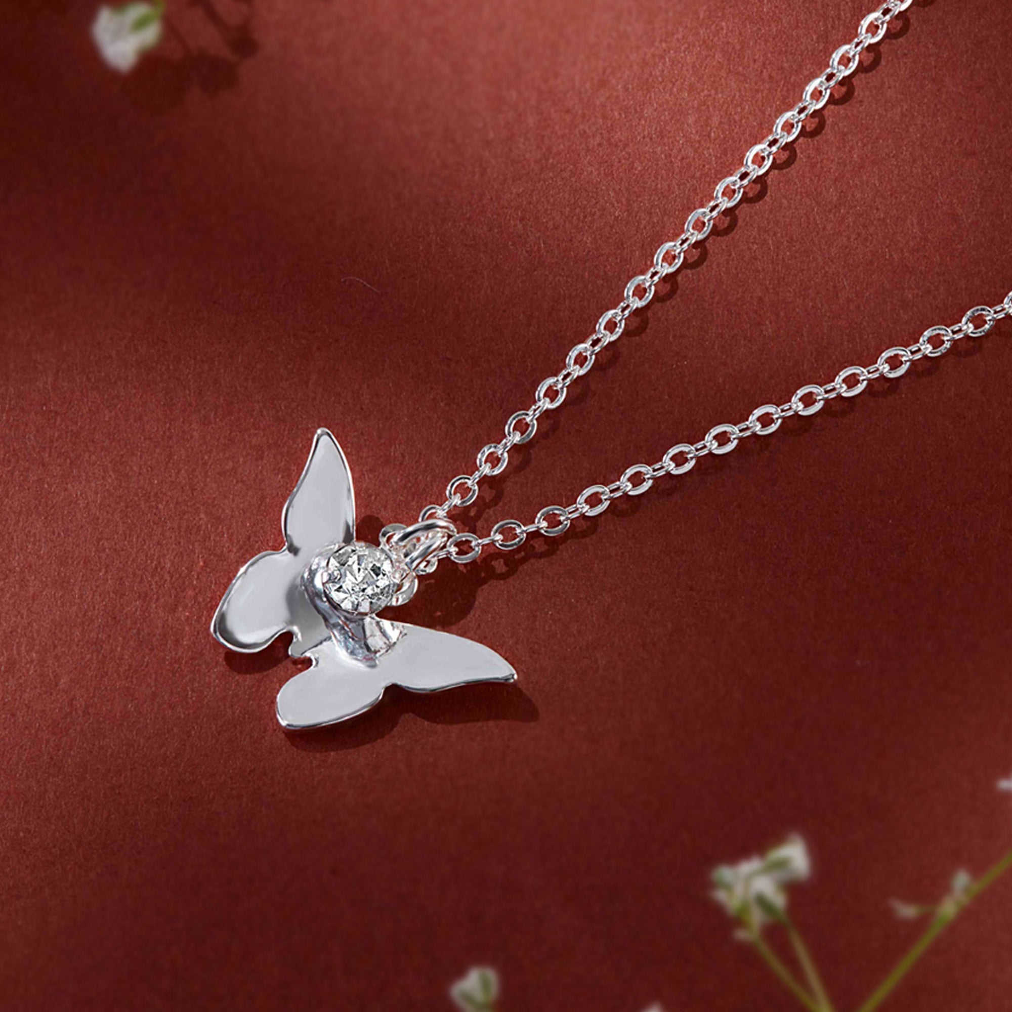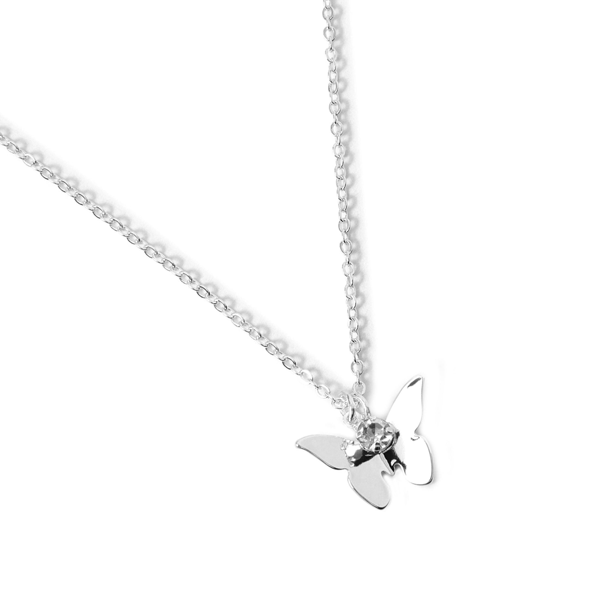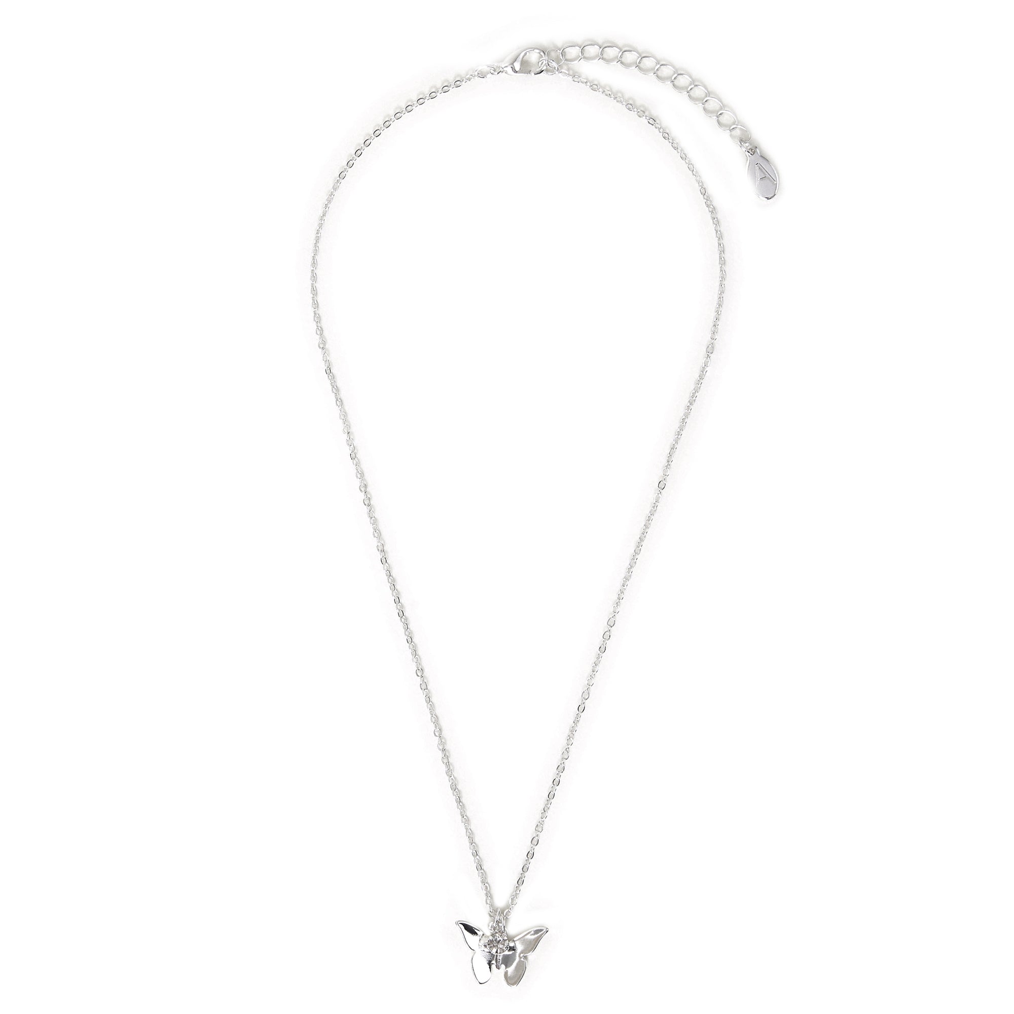 Featuring a fluttering butterfly charm in solid silver-tone metal, this pendant necklace is a cute addition to your jewellery box. Fastened with a lobster clasp and extender.