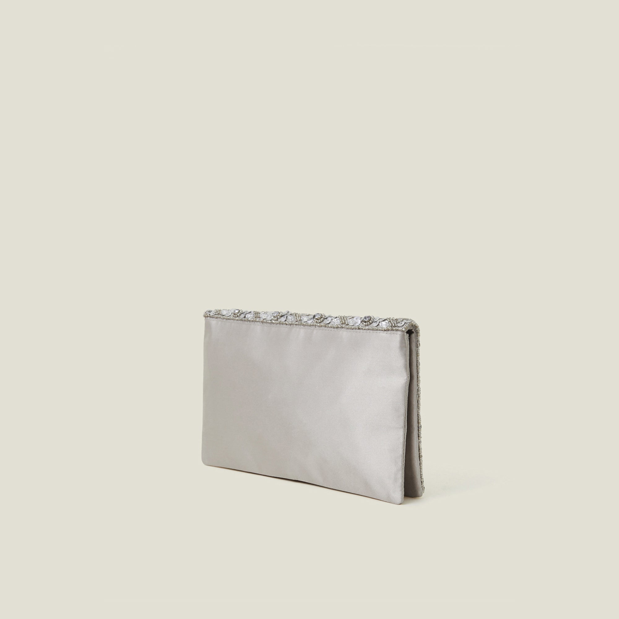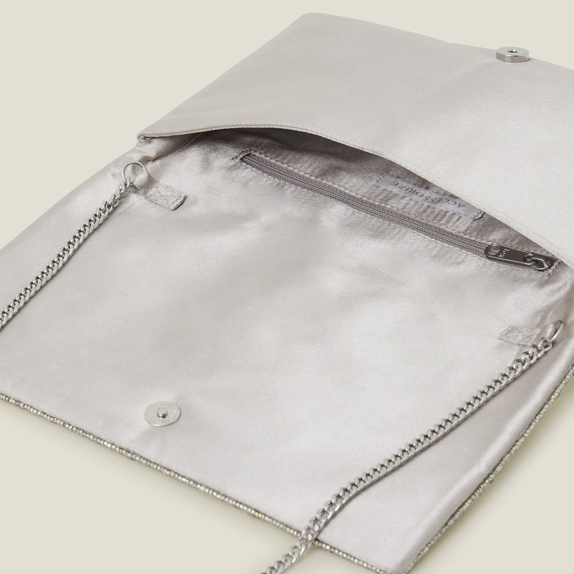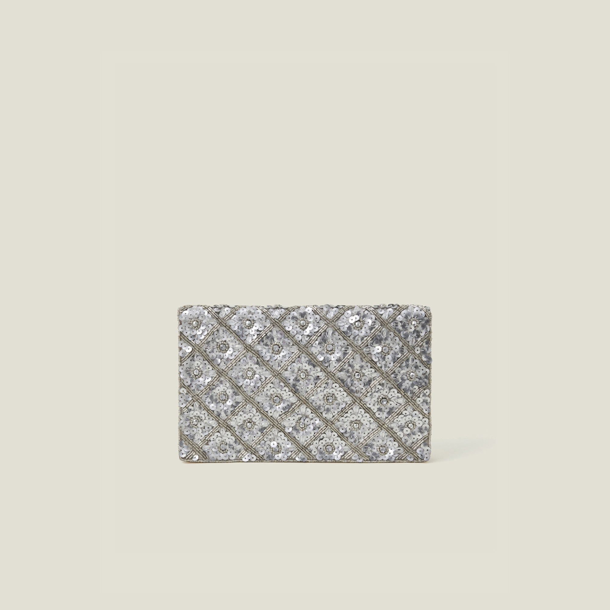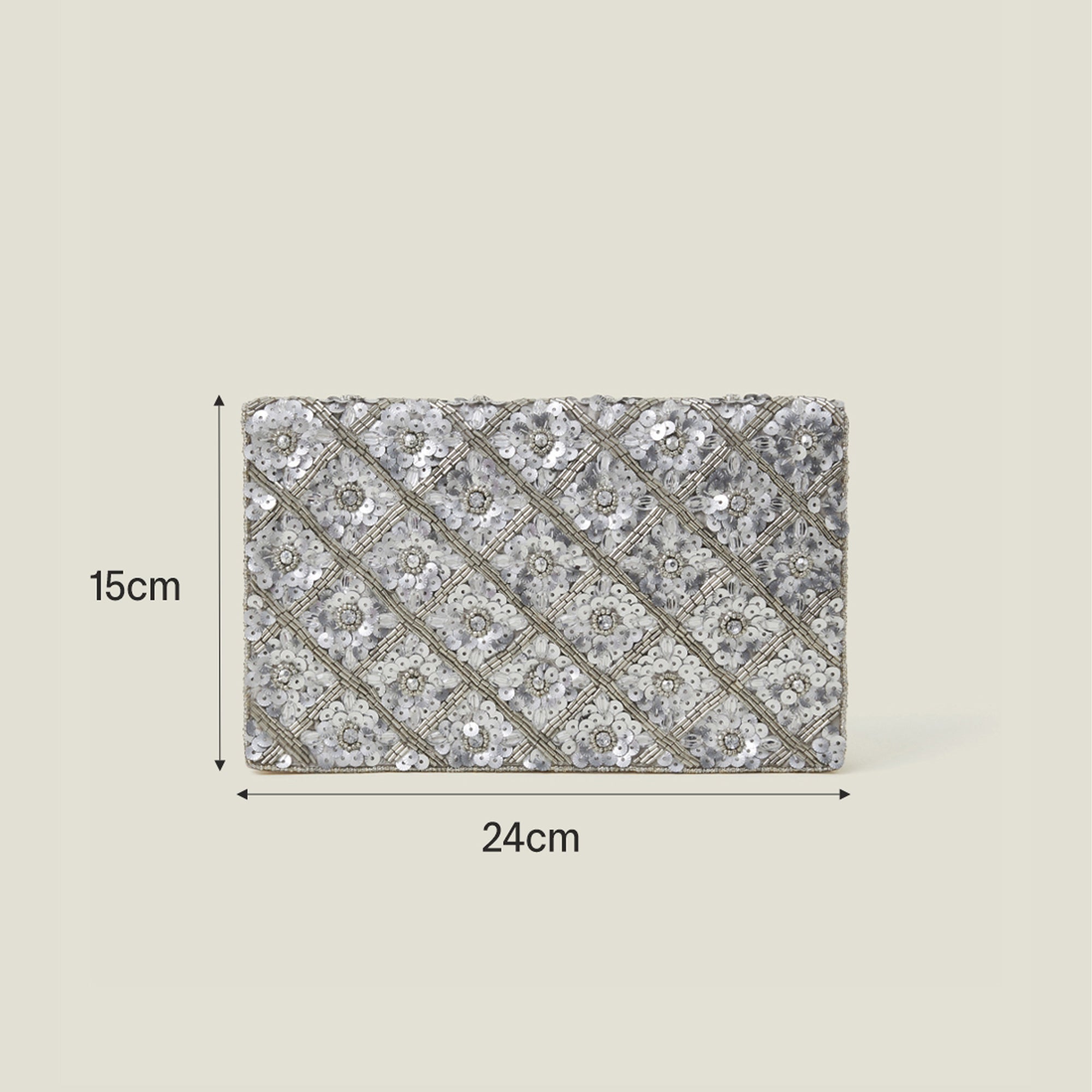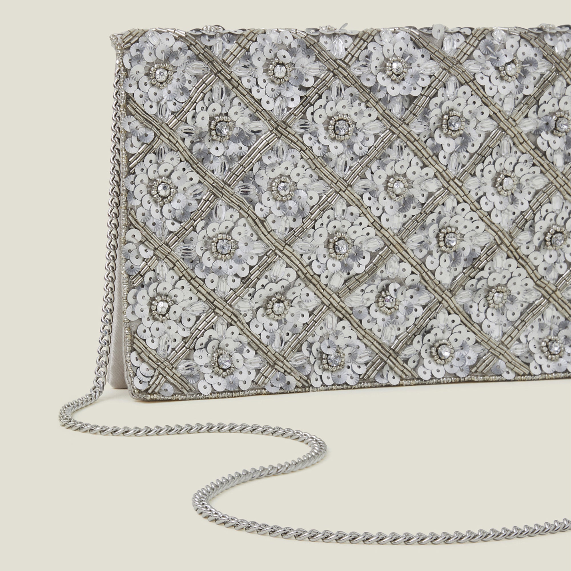 Worthy of those extra-special occasions, this clutch is hand-embellished with beads in an ornate design. It fastens with a magnetic press-stud and has an internal zip pocket for your coins, cards and notes. Just tuck in the chain strap for a clutch option or slip it over the shoulder for hands-free table grazing