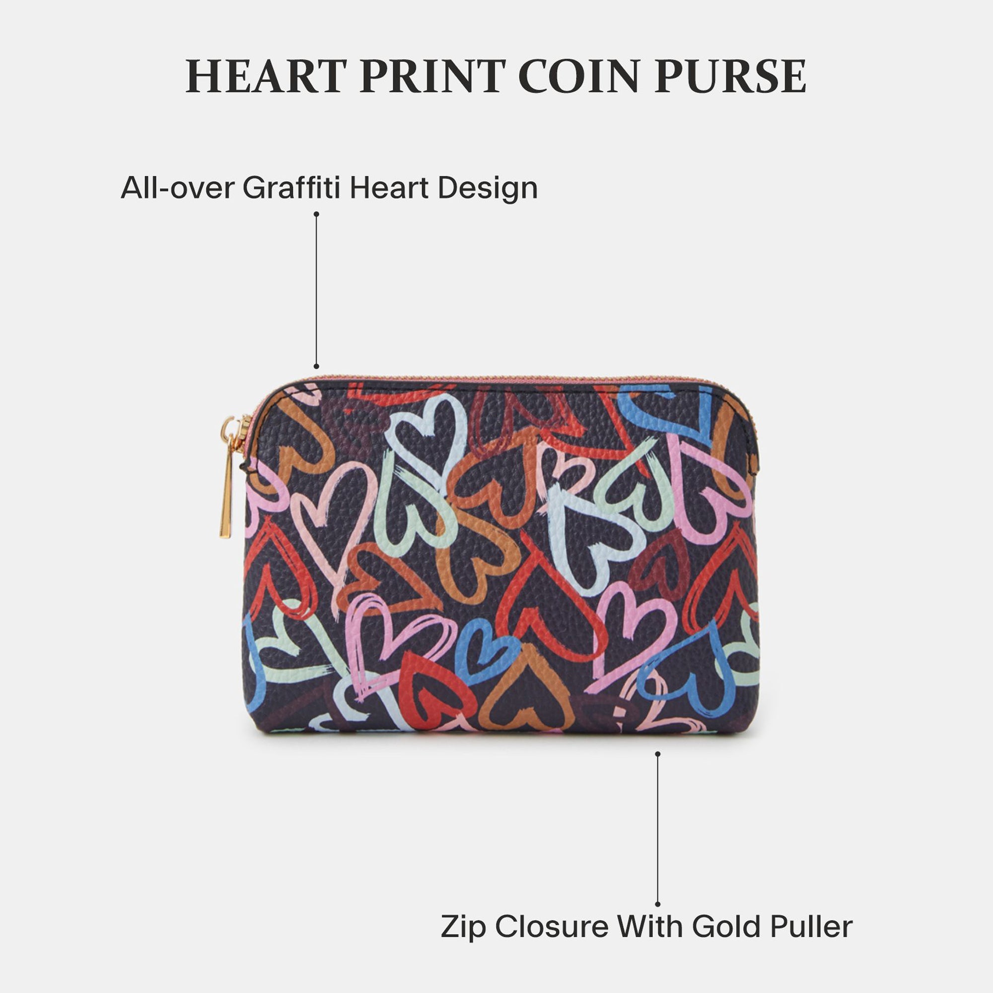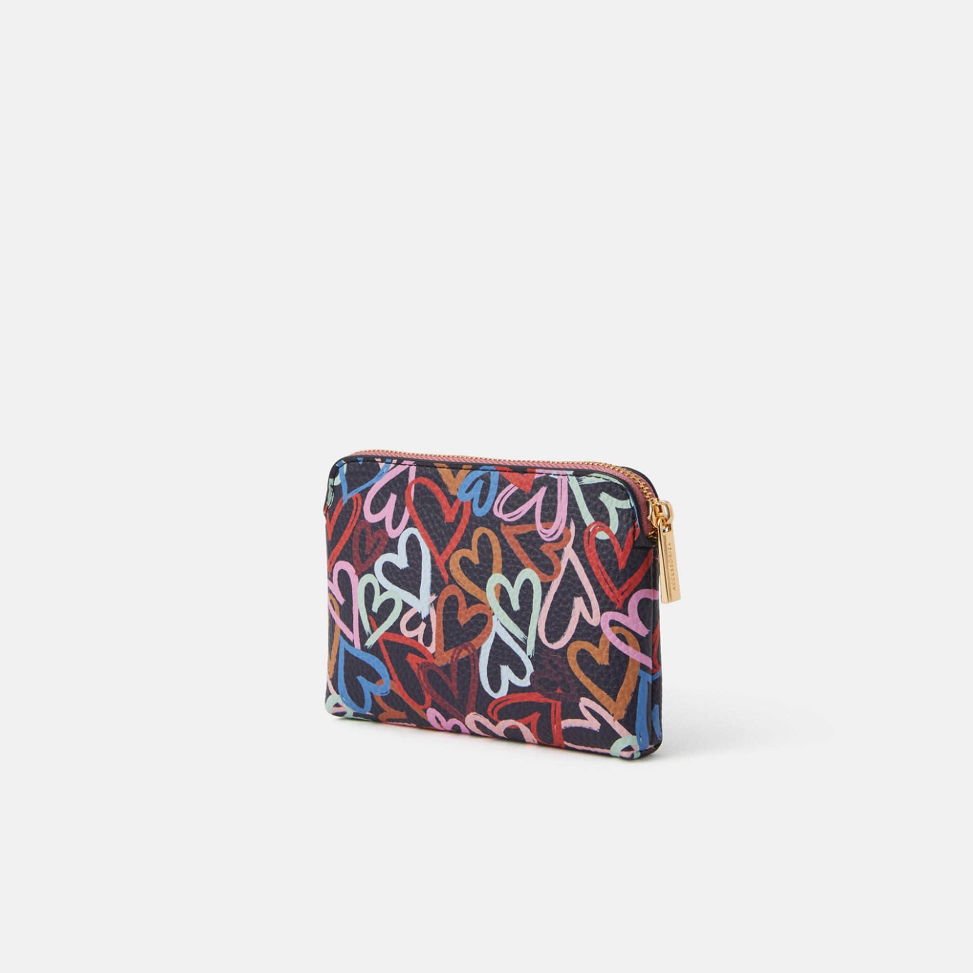 Scribbled with love, this purse is perfect for keeping loose change and small trinkets safe in your tote. Made from faux leather with colourful graffiti-style hearts, it's finished with a zip fastening.
