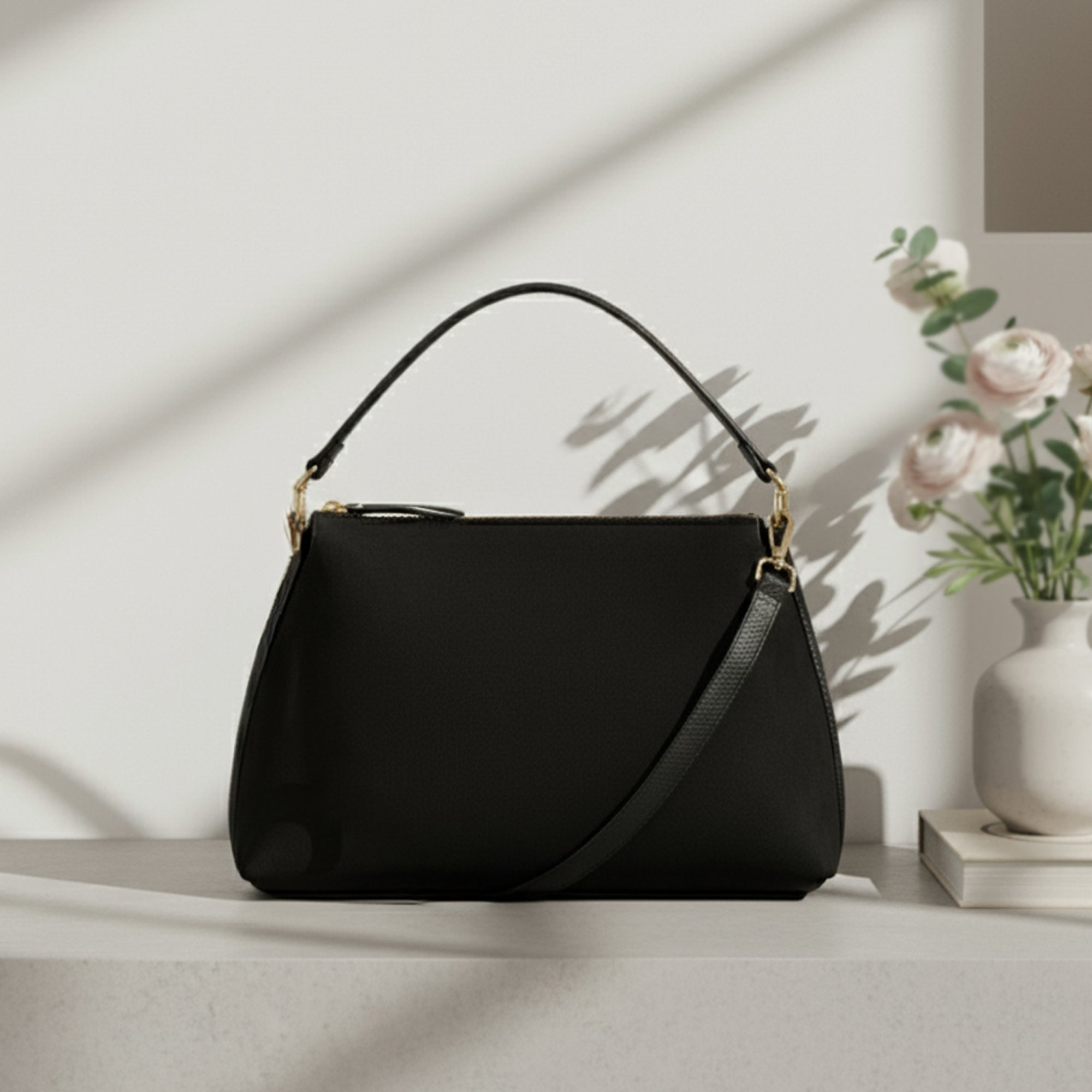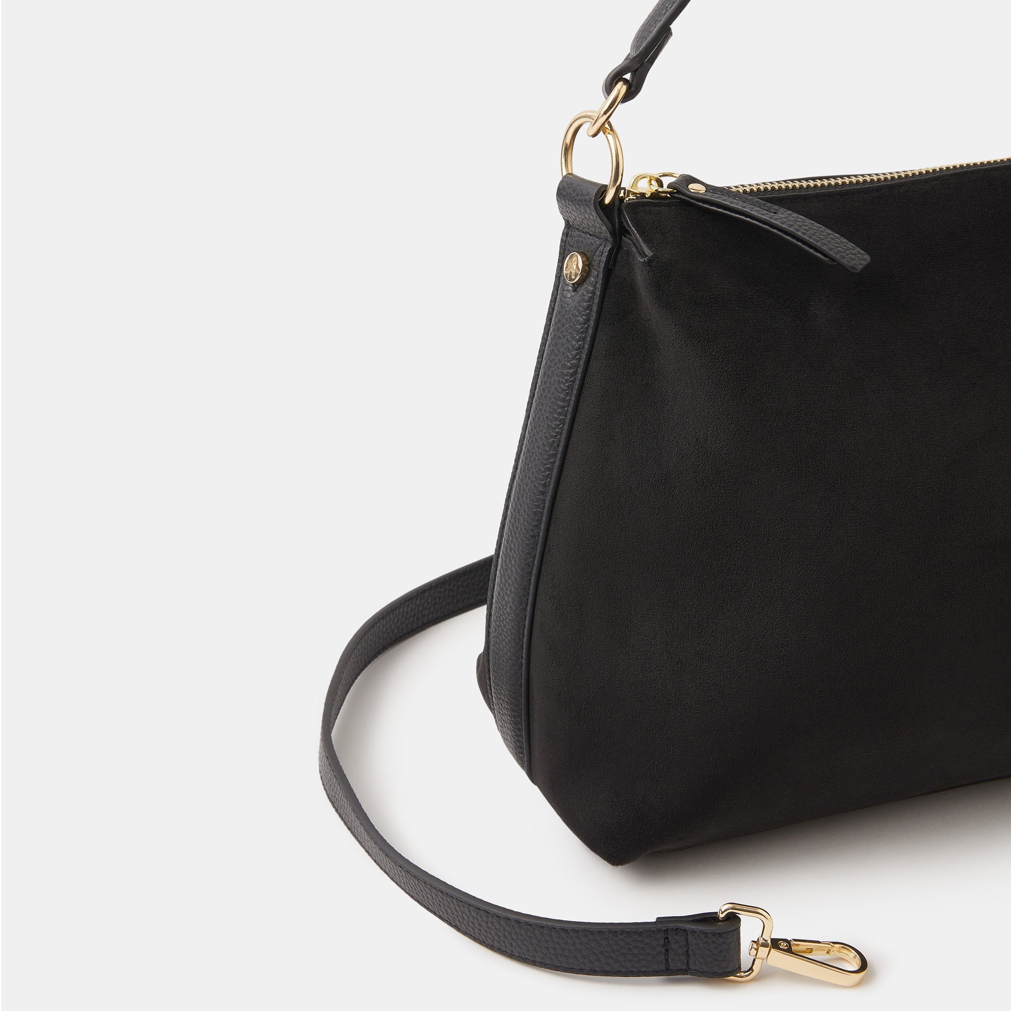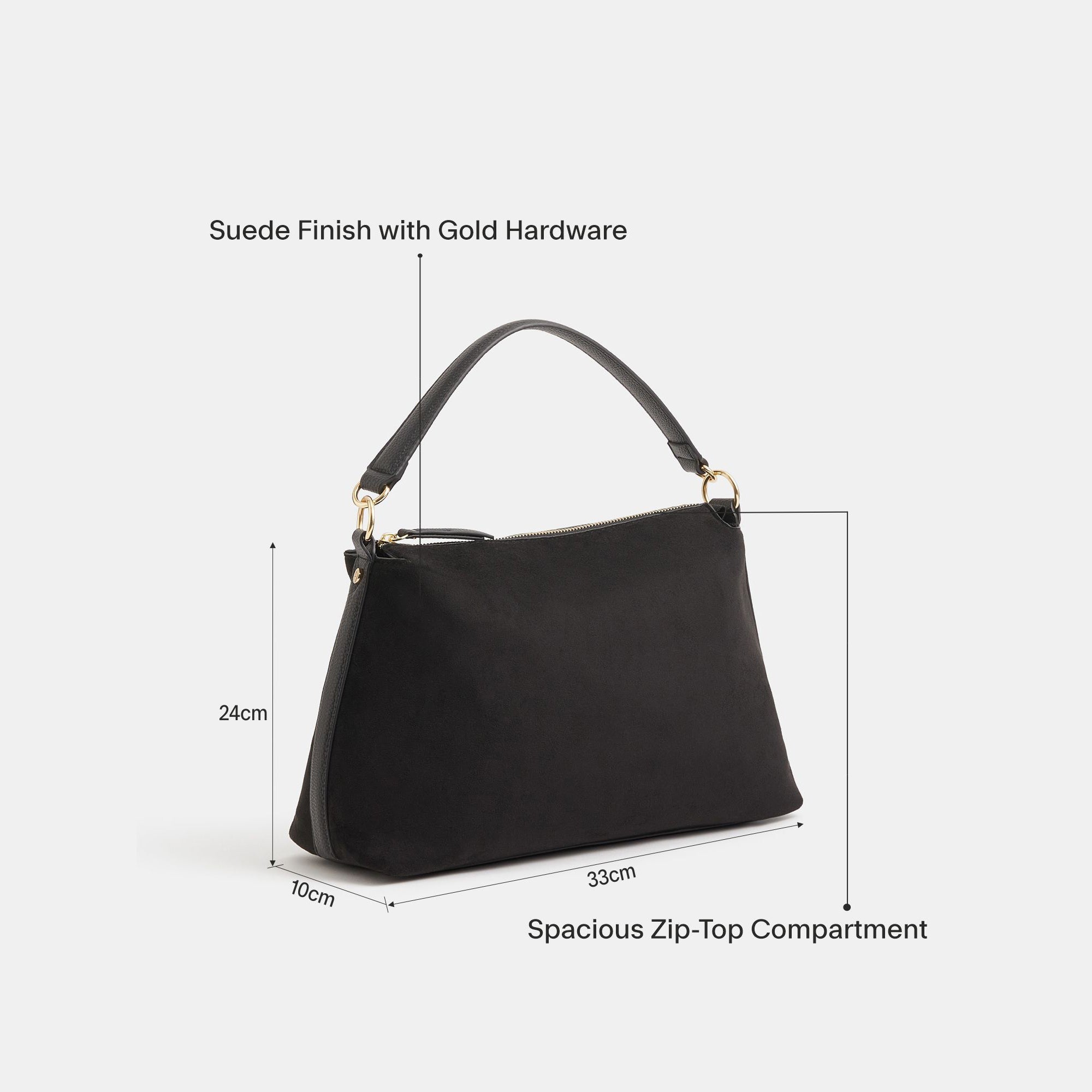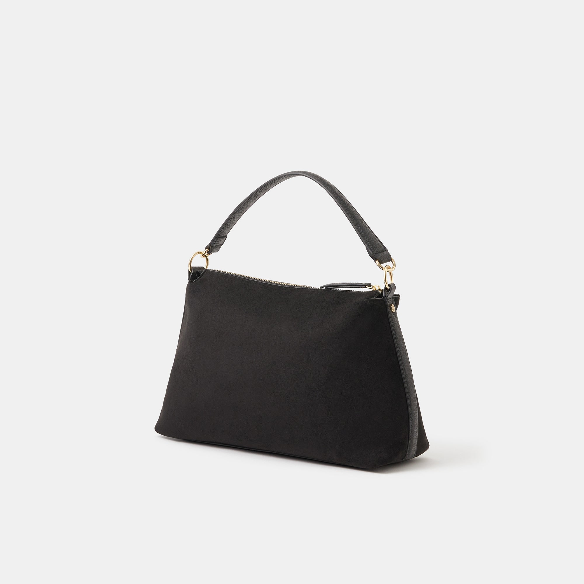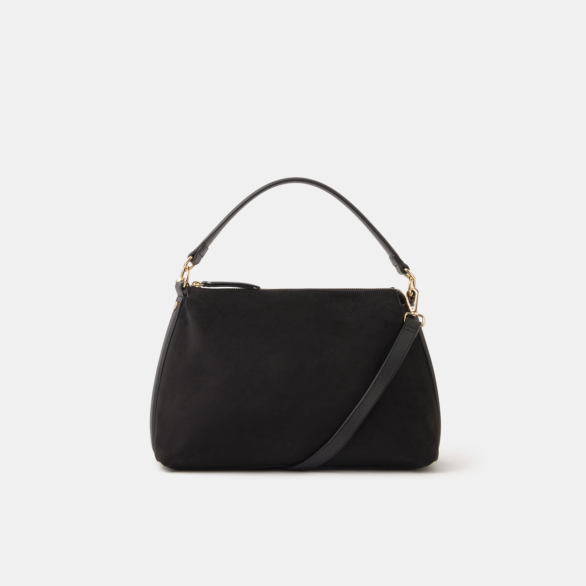 Chic, soft and slouchy, this handbag's got it all. Perfect for everyday wear, it's designed in faux suede with a main zip compartment and small zip pocket inside. Finished with a dual strap because (like you) she's versatile, so swing it from the handles or style it across the body. Black