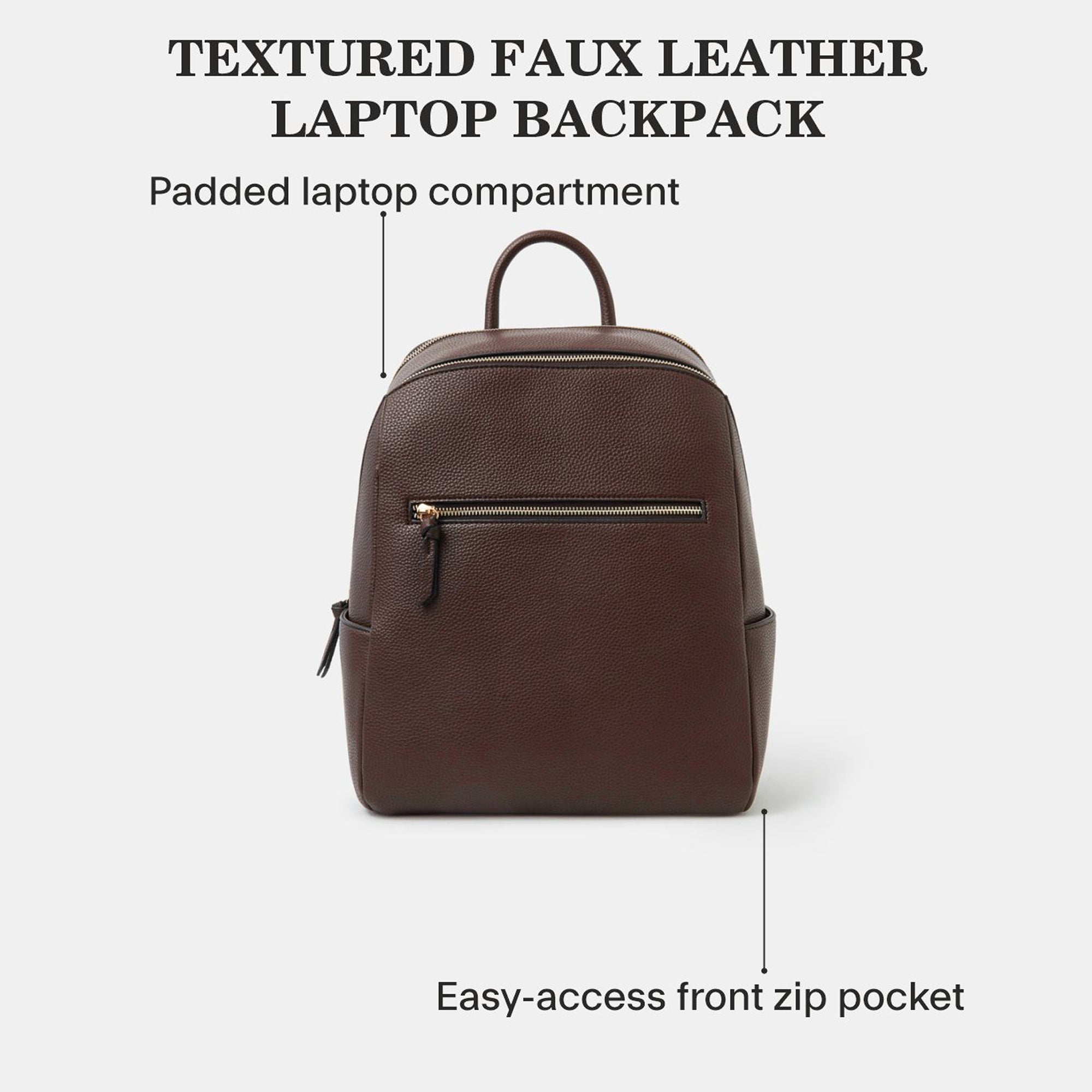 A bag appropriate for smart and casual? We've got you covered! From office commutes to university lectures, this zip-around backpack features various pockets to hold all your essentials, including a slim compartment at the back which is great for small laptops and electronics. Crafted in soft faux-leather, it's available in black and tan. Fits a 12x8 in laptop.
