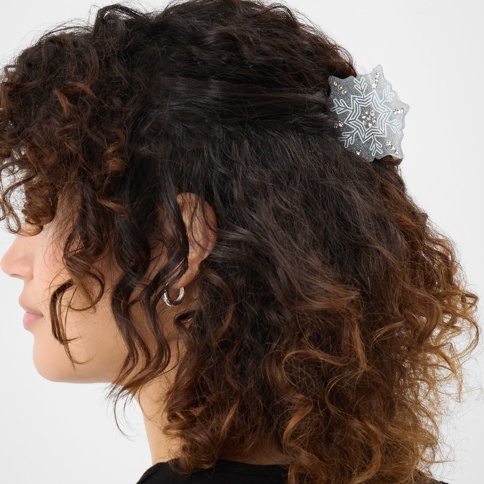 Full of winter wonder, this claw clip is a dazzling addition to your updos this winter. Shaped like a snowflake, it's coated in glitter for a super-sparkly finish. Colour: white
