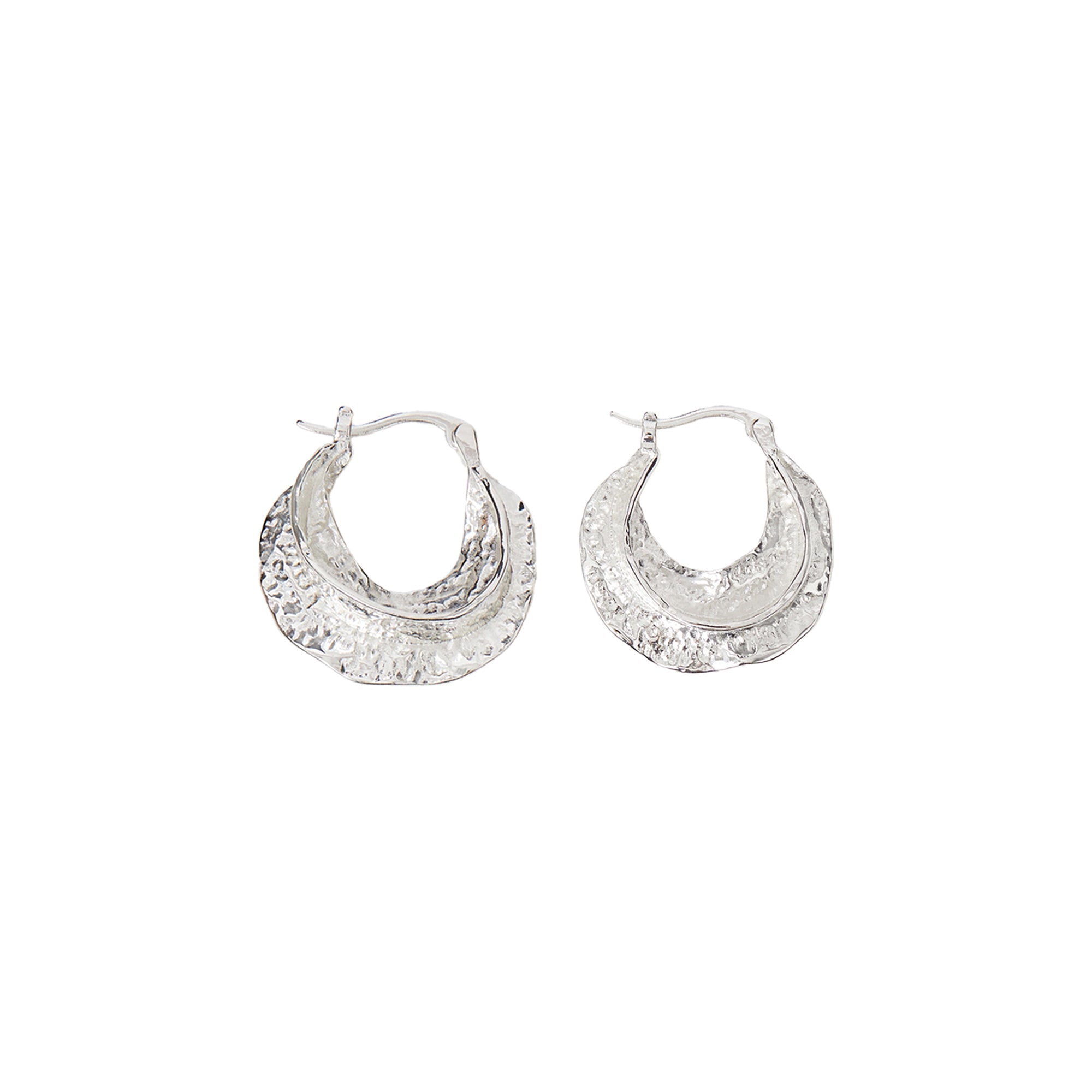Boasting a chunky hoop design with a ridged and hammered finish, these artful earrings are dipped in sterling silver for a sparkling finish. The Lever Back lock offers both security and ease of wear, providing a comfortable fit while keeping the earrings securely in place