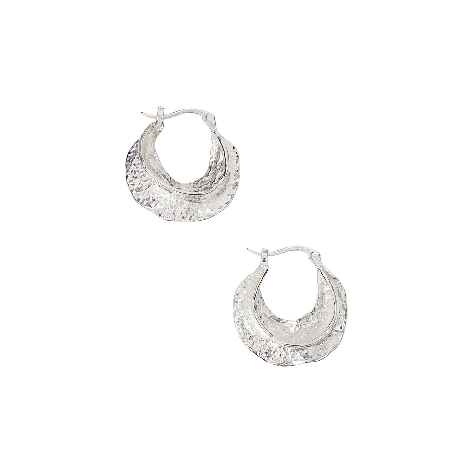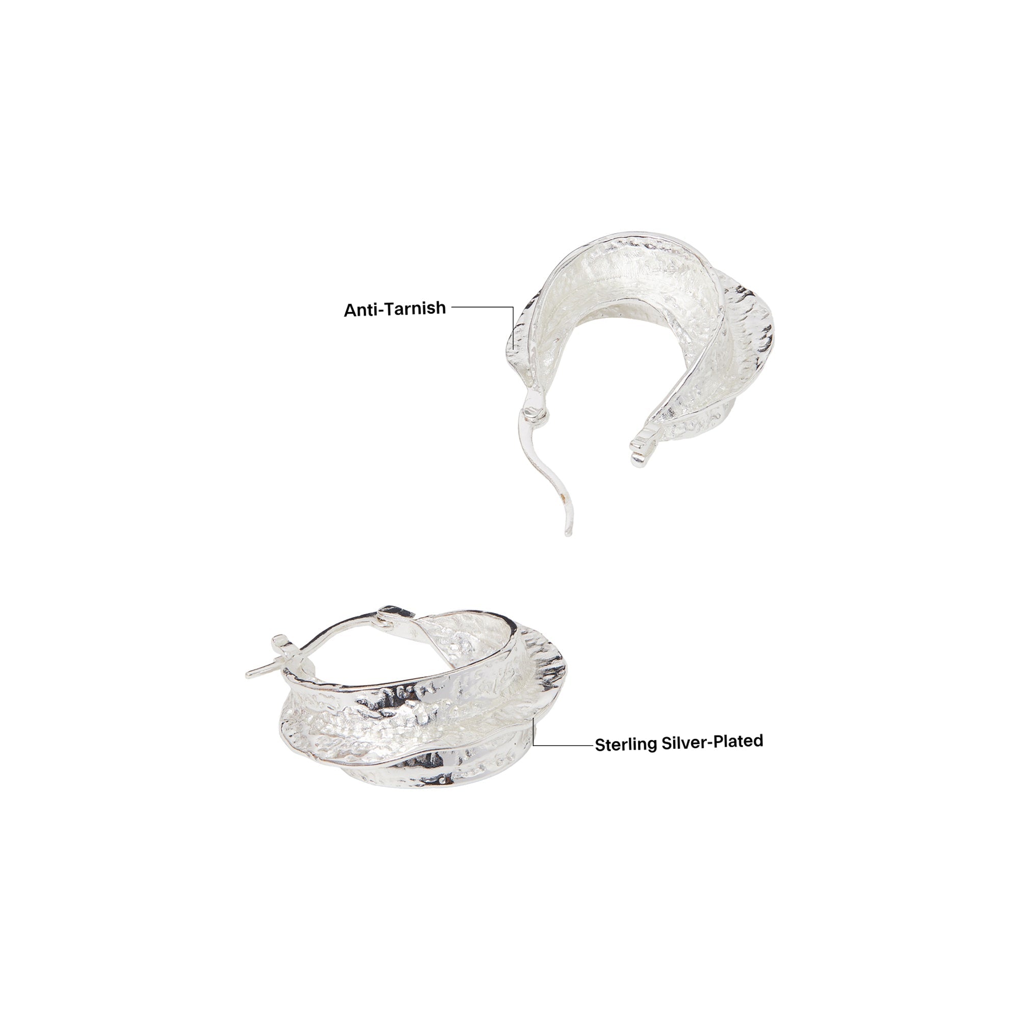 Sterling Silver-Plated Chunky Hammered Hoop Earrings