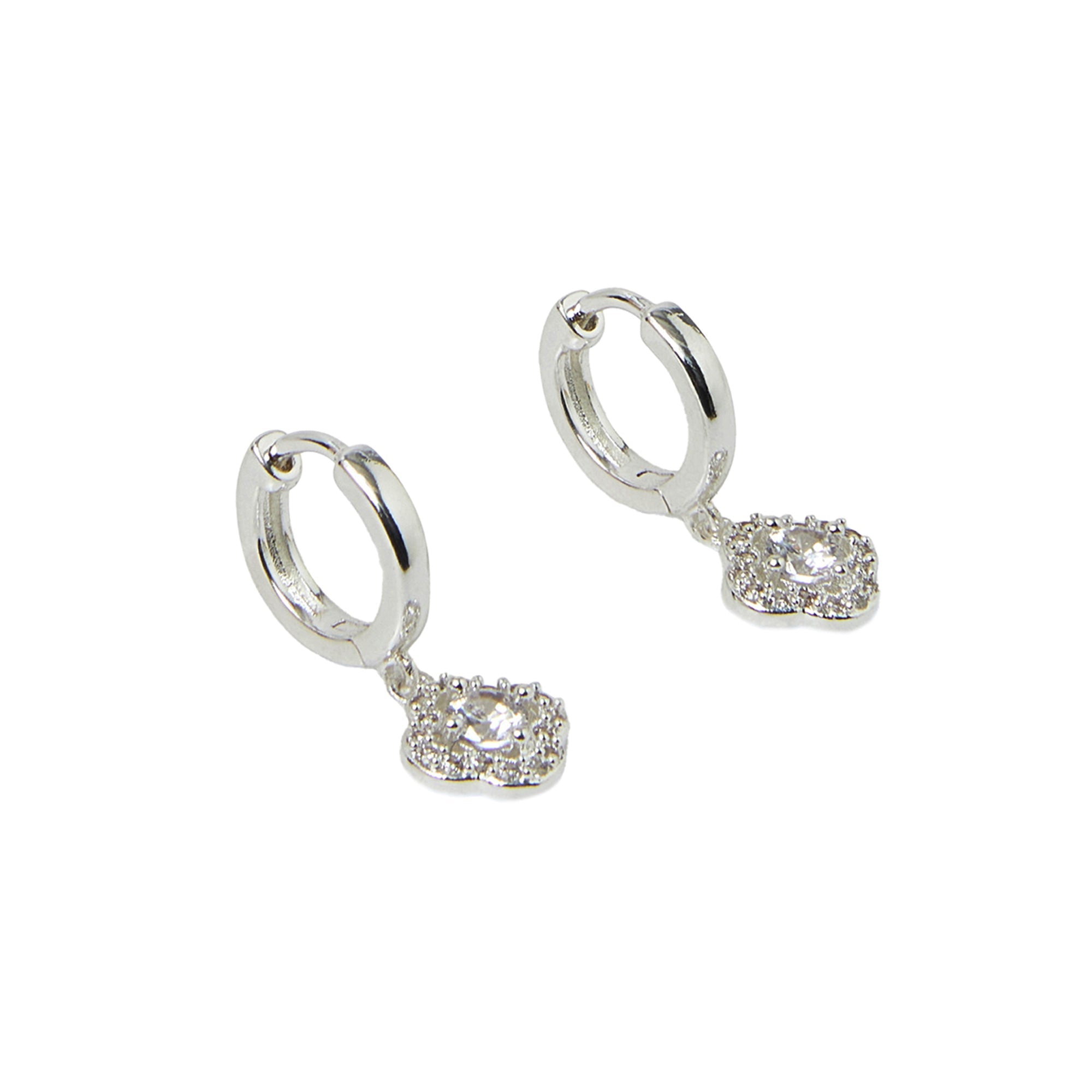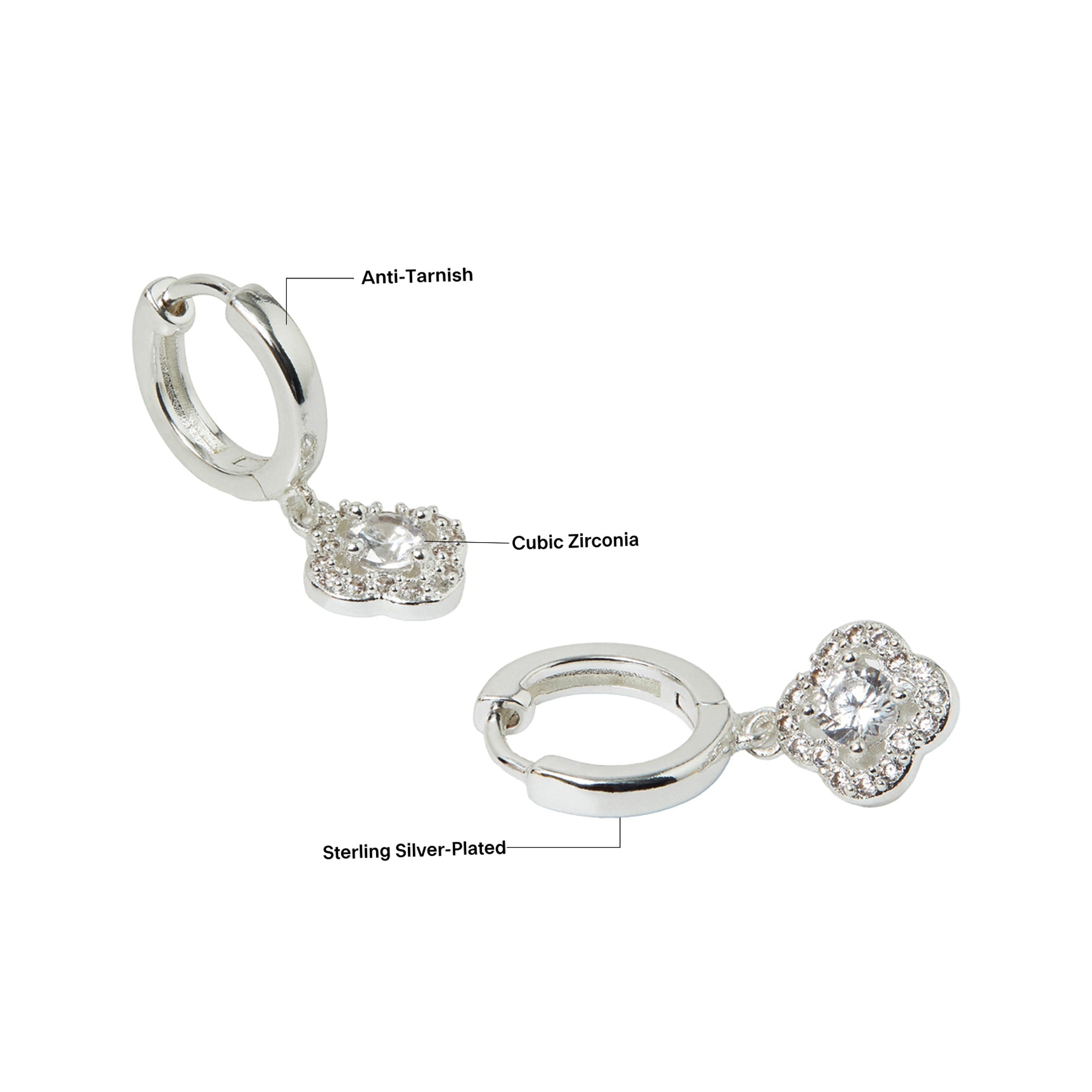 Sterling Silver-Plated Clover Drop Hoop Earrings