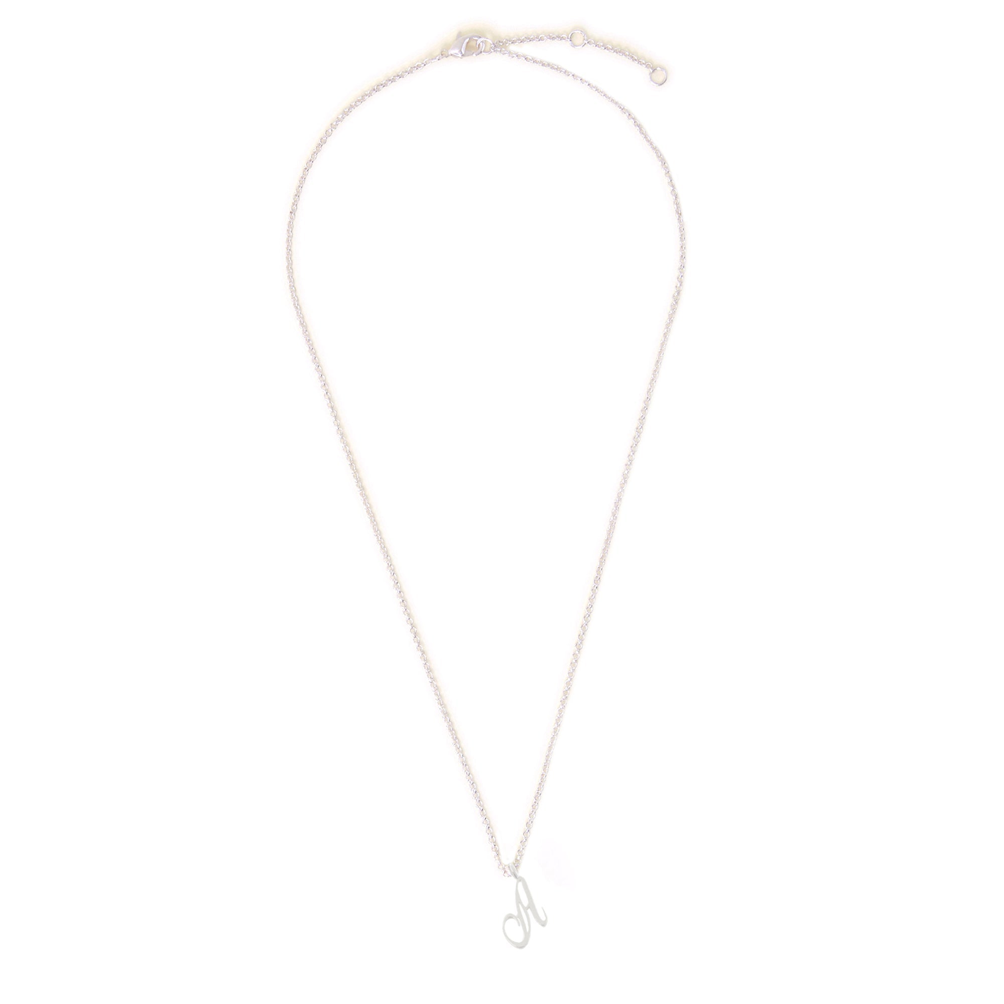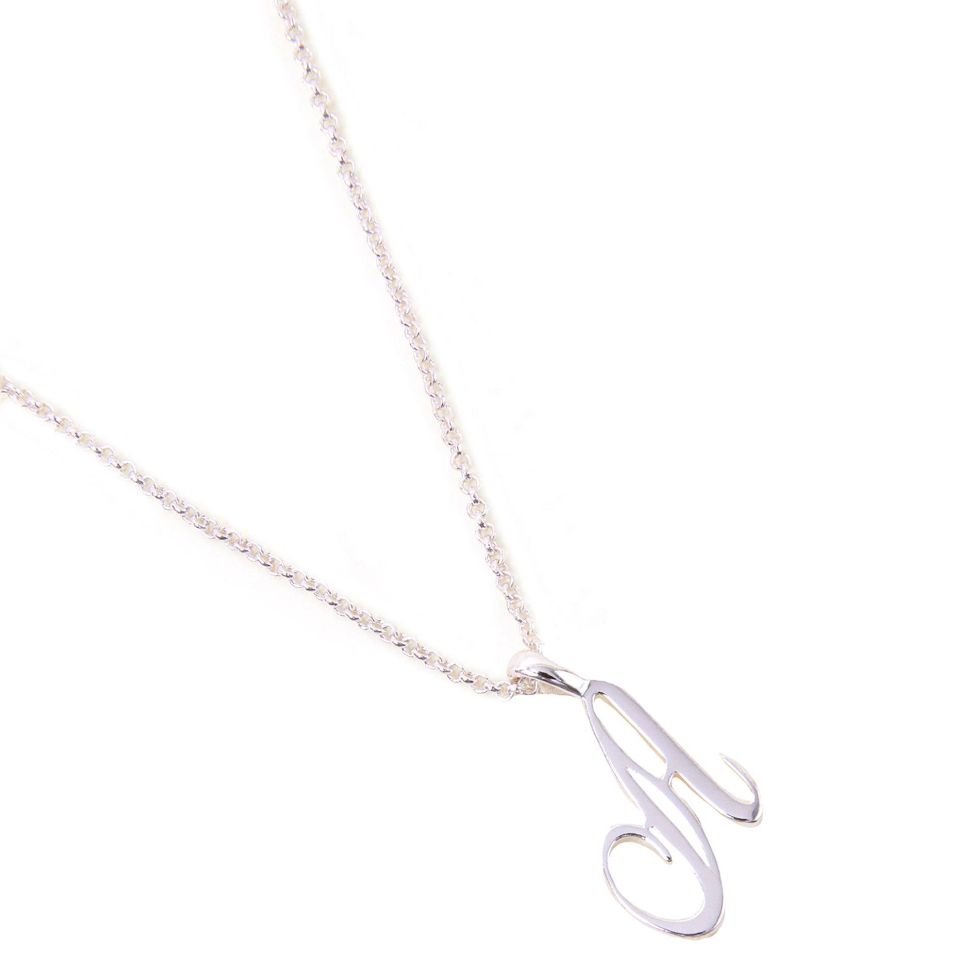 Personalise your necklace stack with this piece. Plated in sterling silver, it features a cursive initial pendant that sits pretty alongside a delicate chain.