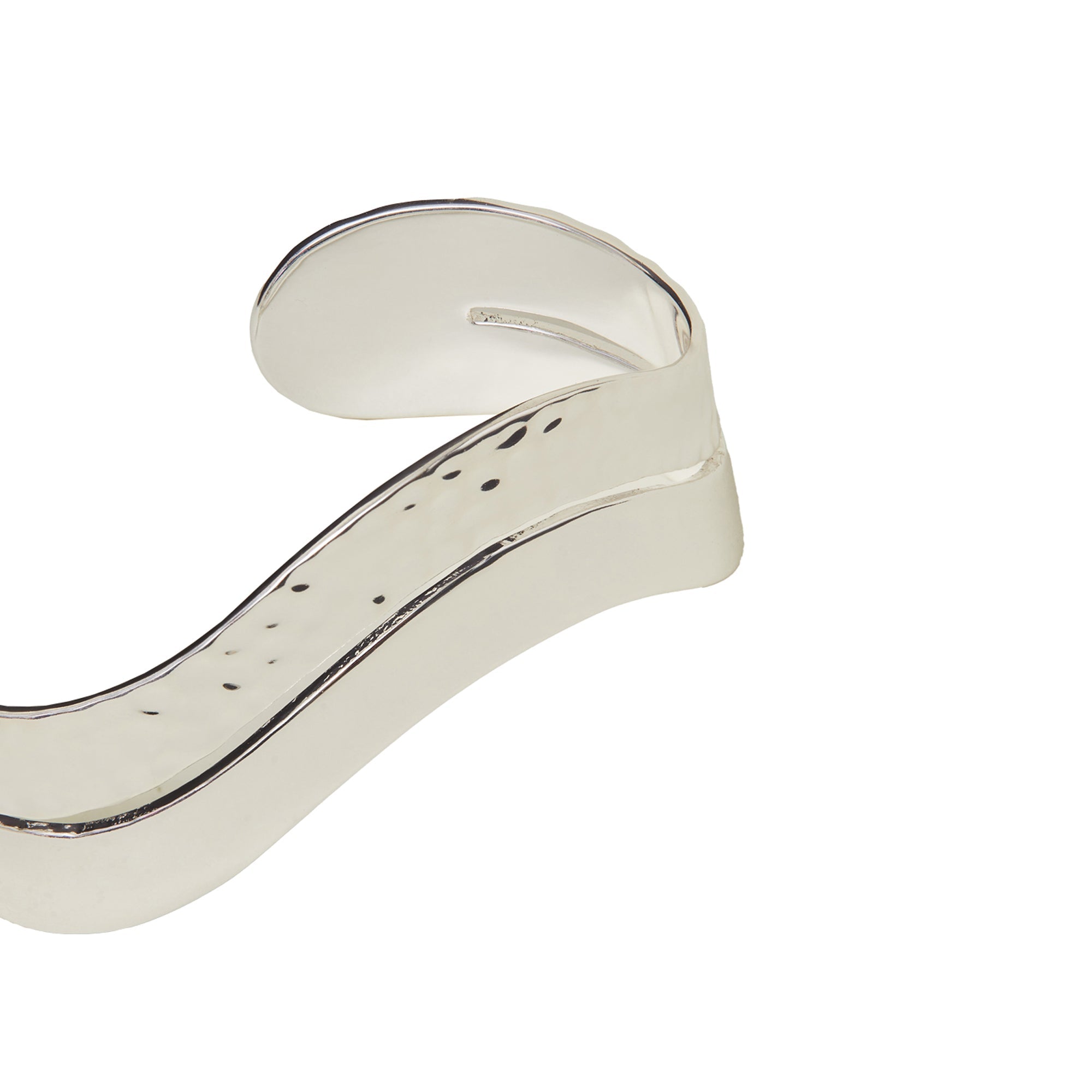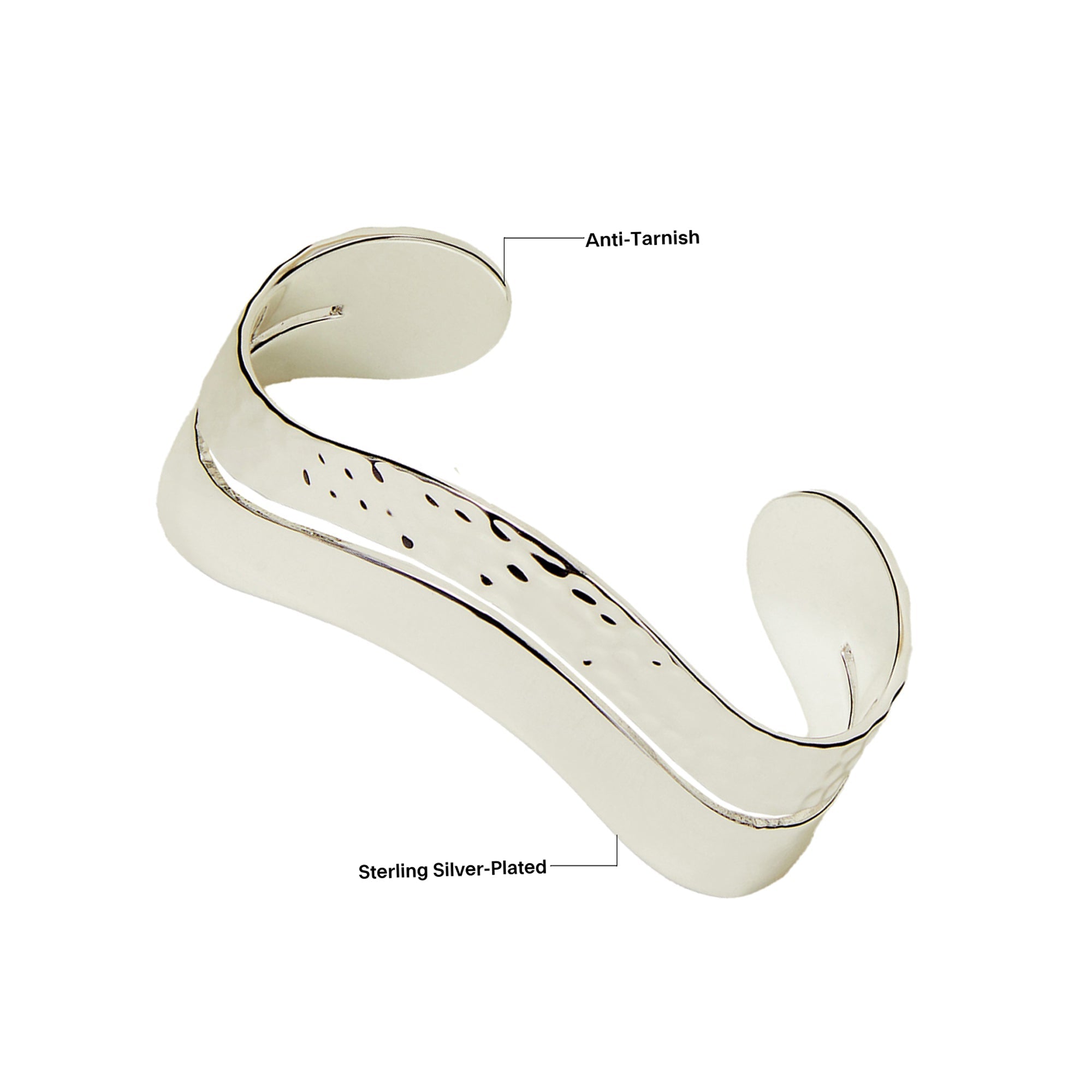 Plated in sterling silver, this cuff bracelet is designed in an on-trend wave finish for a boho statement on your final look.