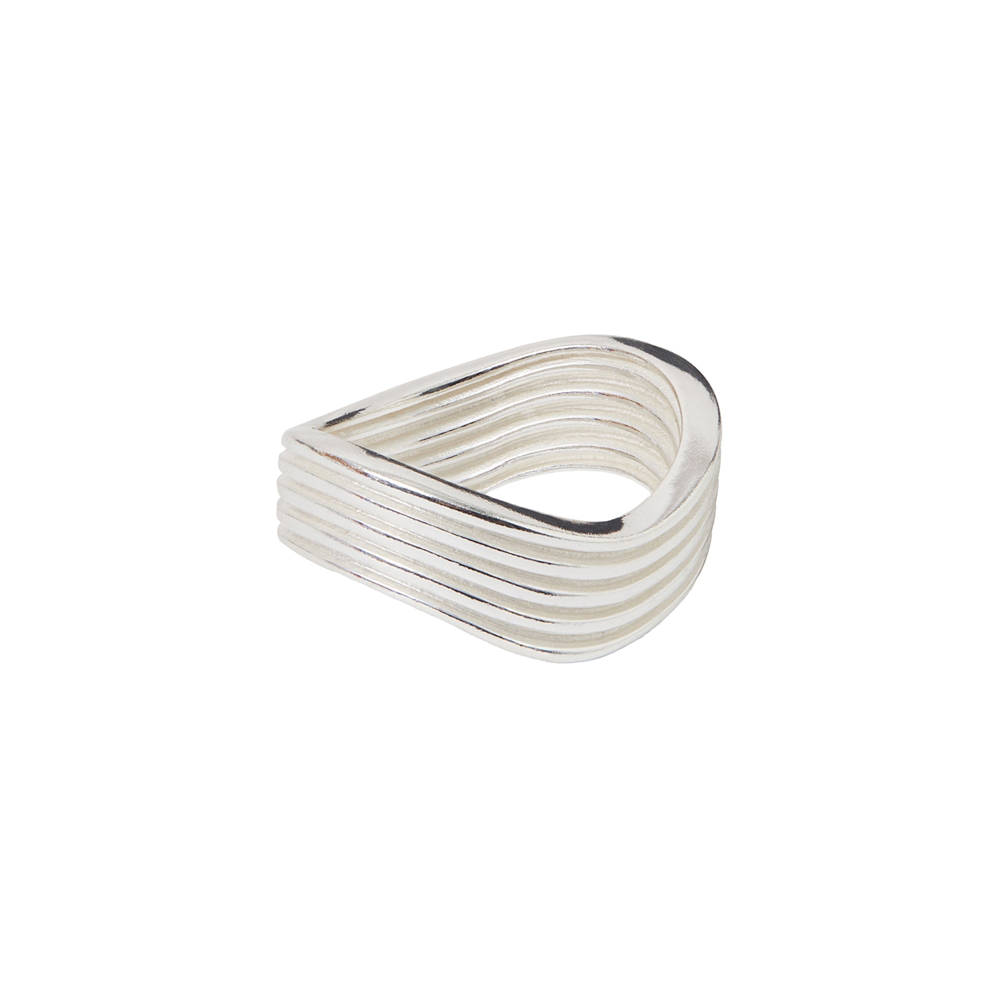 Give us a wave. Plated in sterling silver, this ring bring a chunky element to your ring stack. Finished in a layered wave profile. Silver