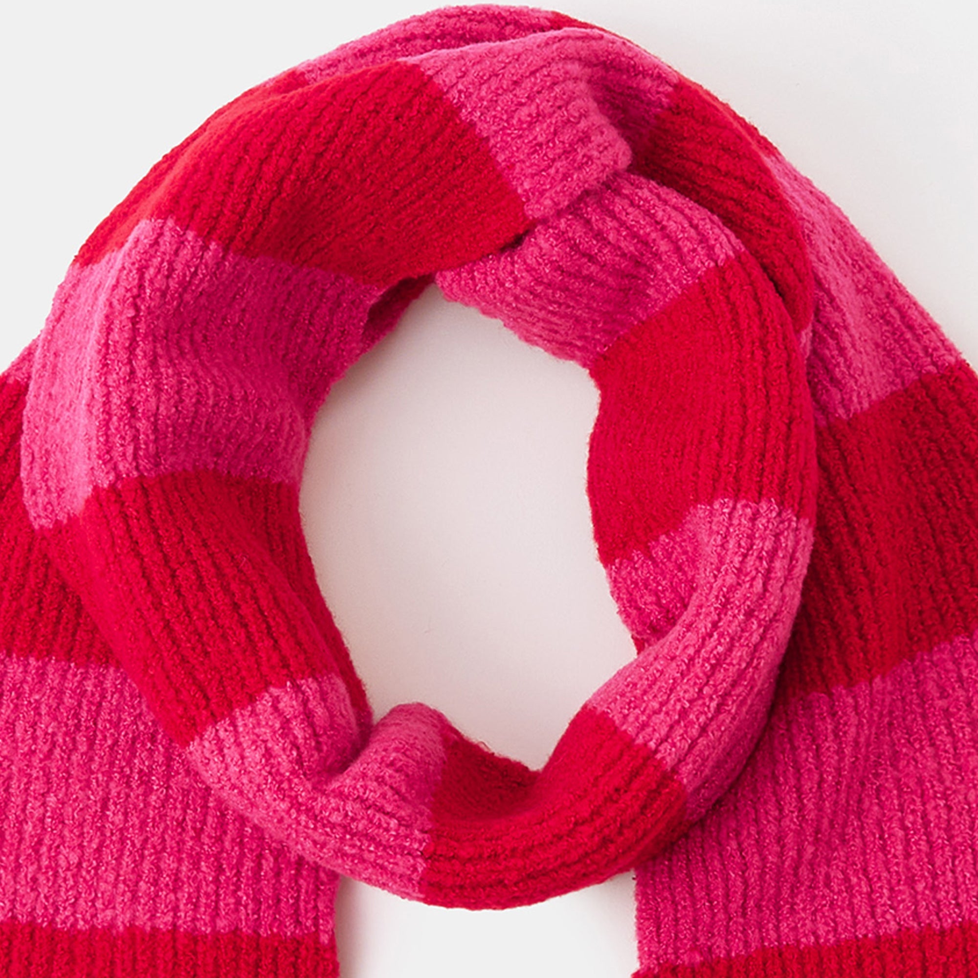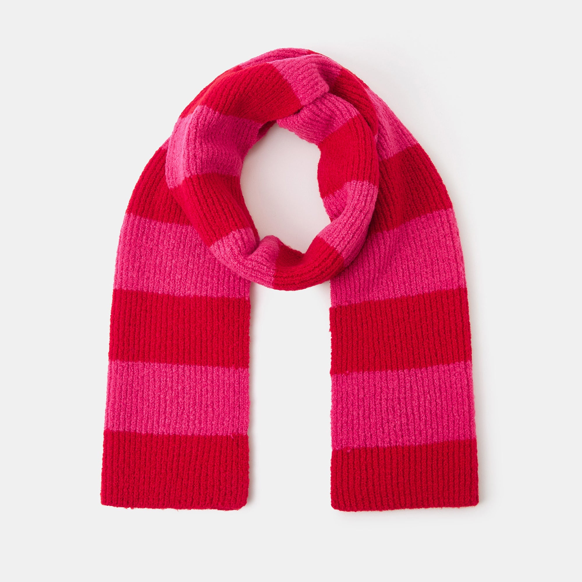 Pink and red? Big YES. Stitched with snuggly-soft yarns in a ribbed finish, this scarf showcases bold stripes in the best colour combo. Not only will it brighten up your winter looks, it'll brighten up your day, too!