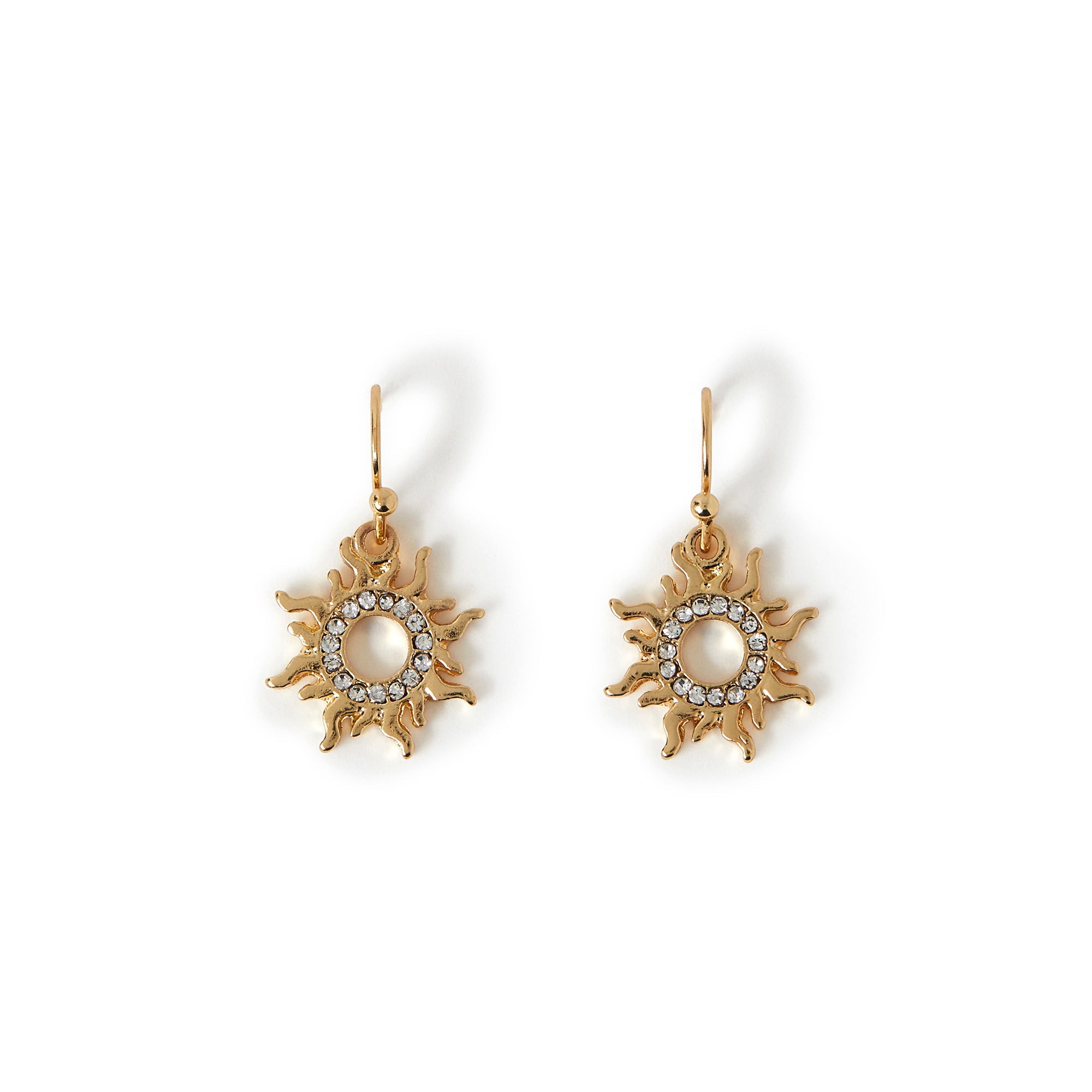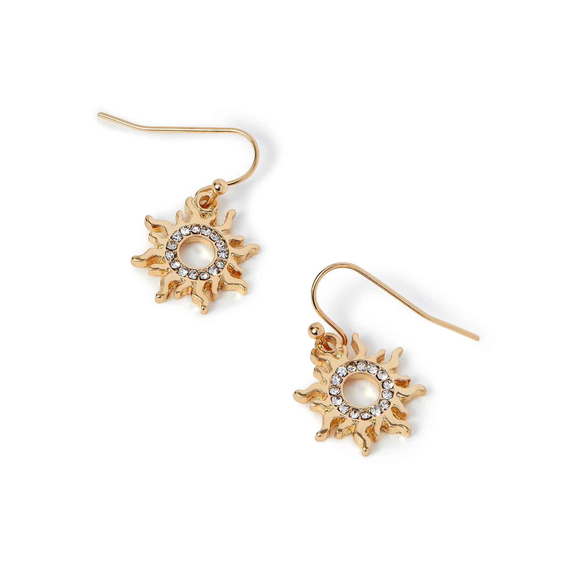 As dazzling as the sunshine itself, these charming earrings showcase diamante sunbeam motifs dangling from a wire hook profile.