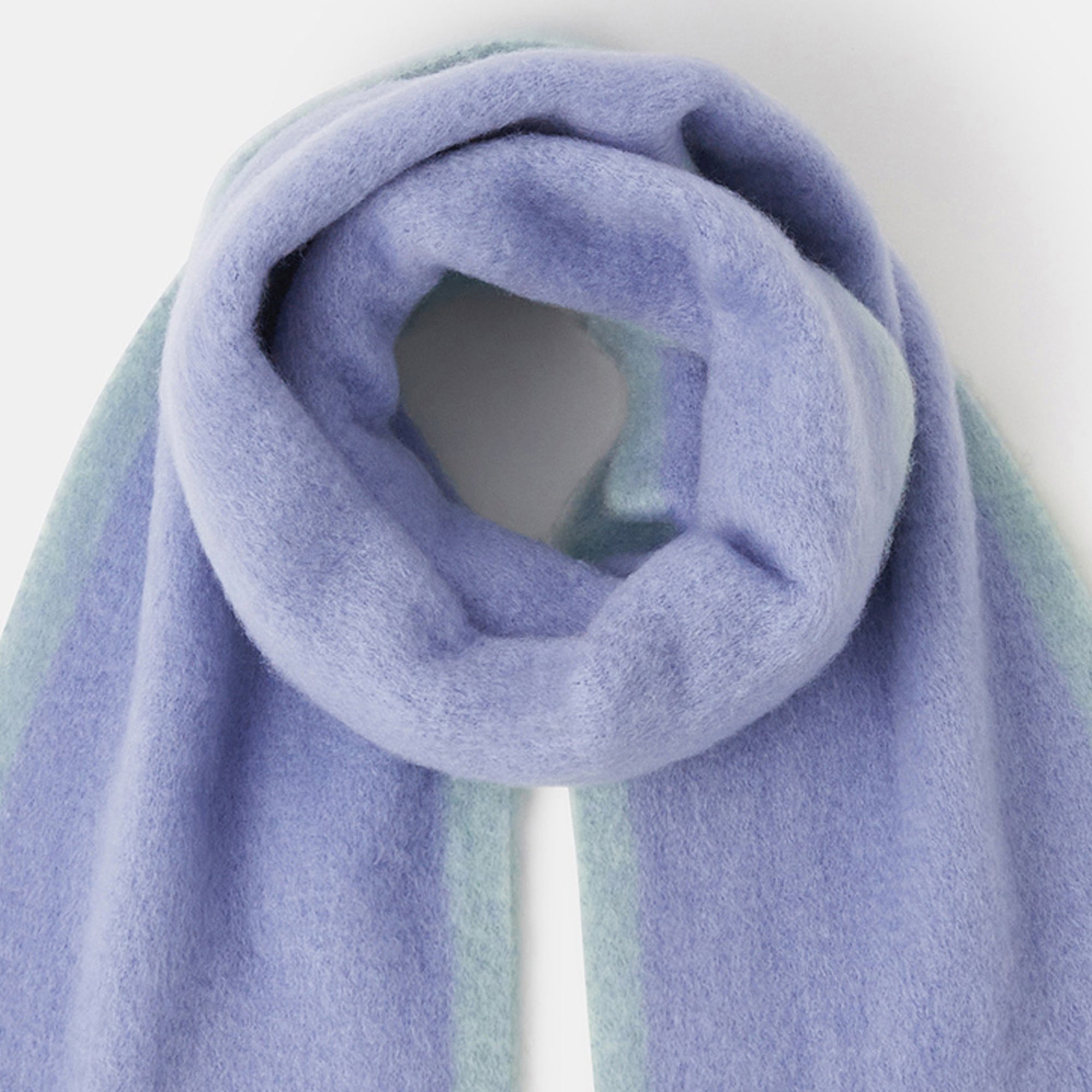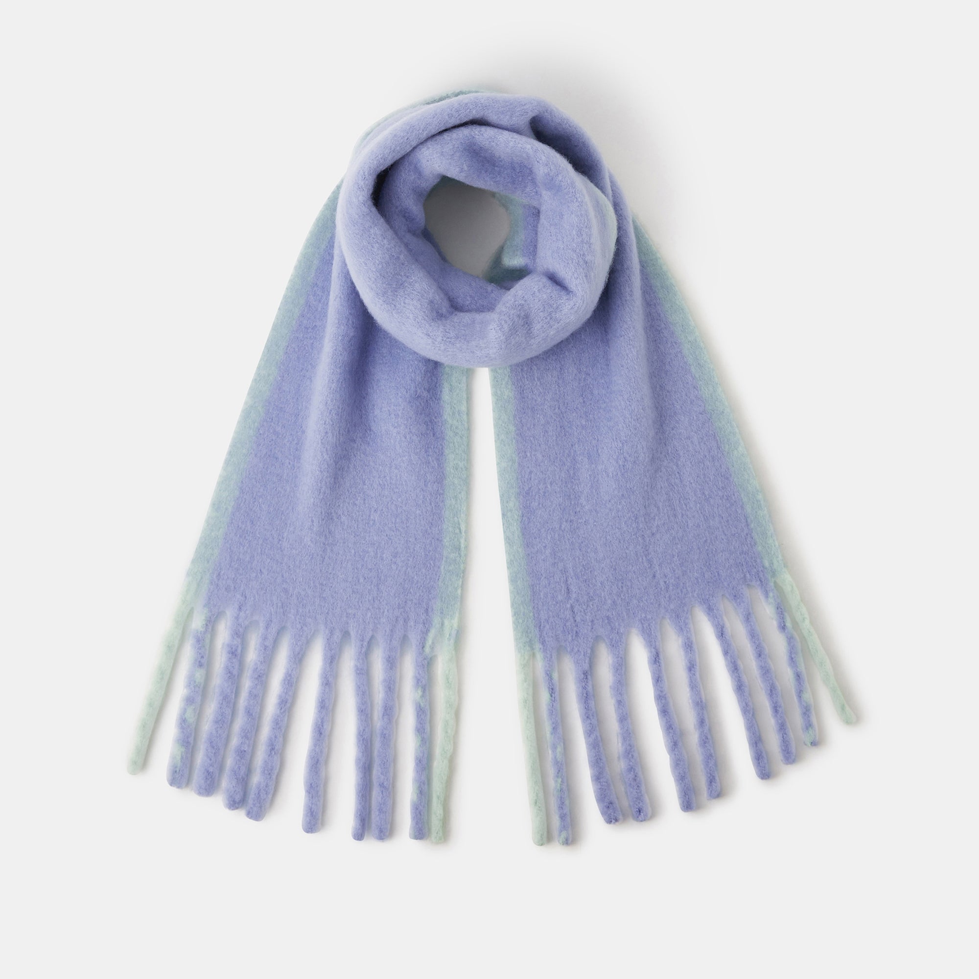Cold? Couldn’t be us – not with this scarf. Made from yarns so soft it feels like a warm hug, this scarf is made in blue with light contrast edges and chunky twisted tassels to finish.