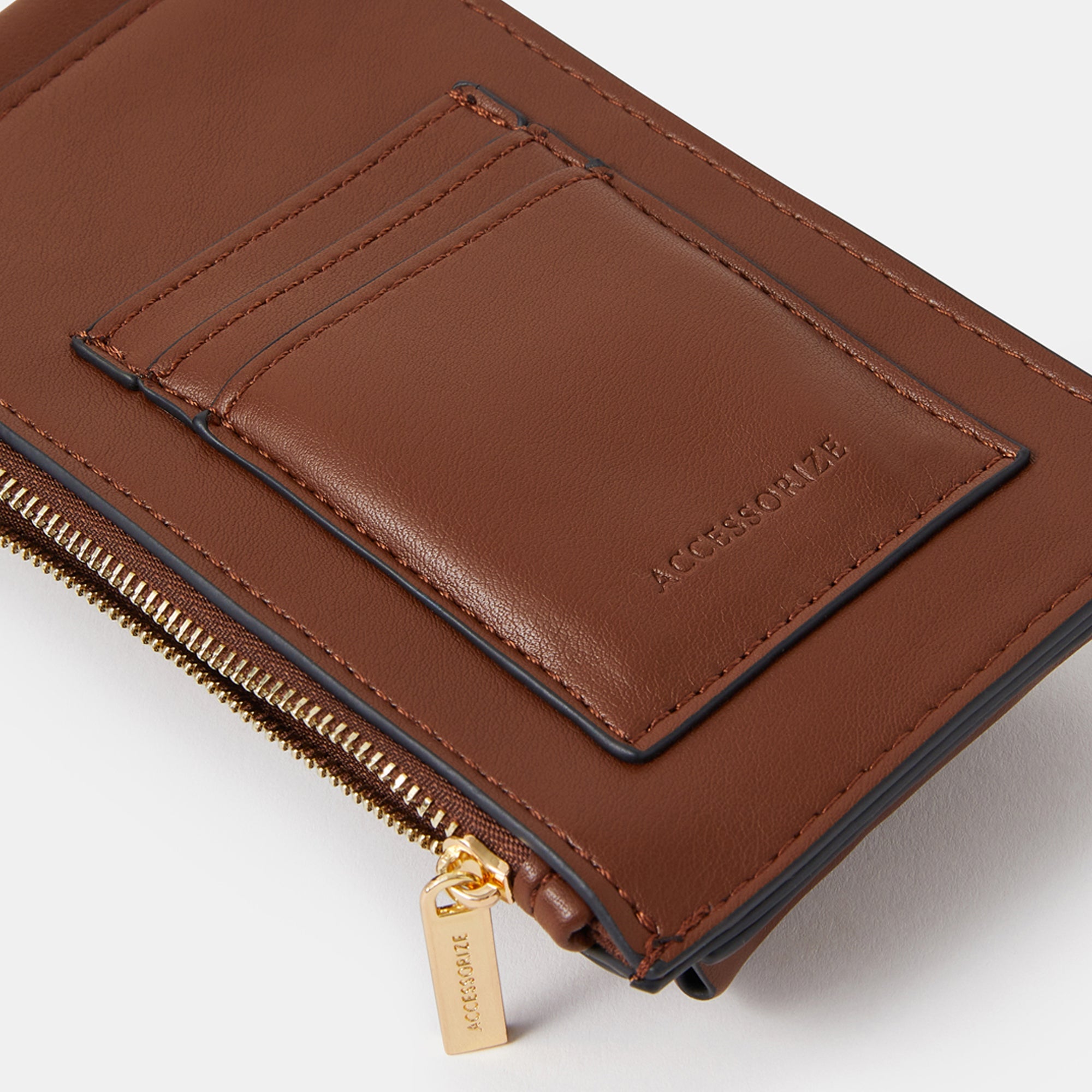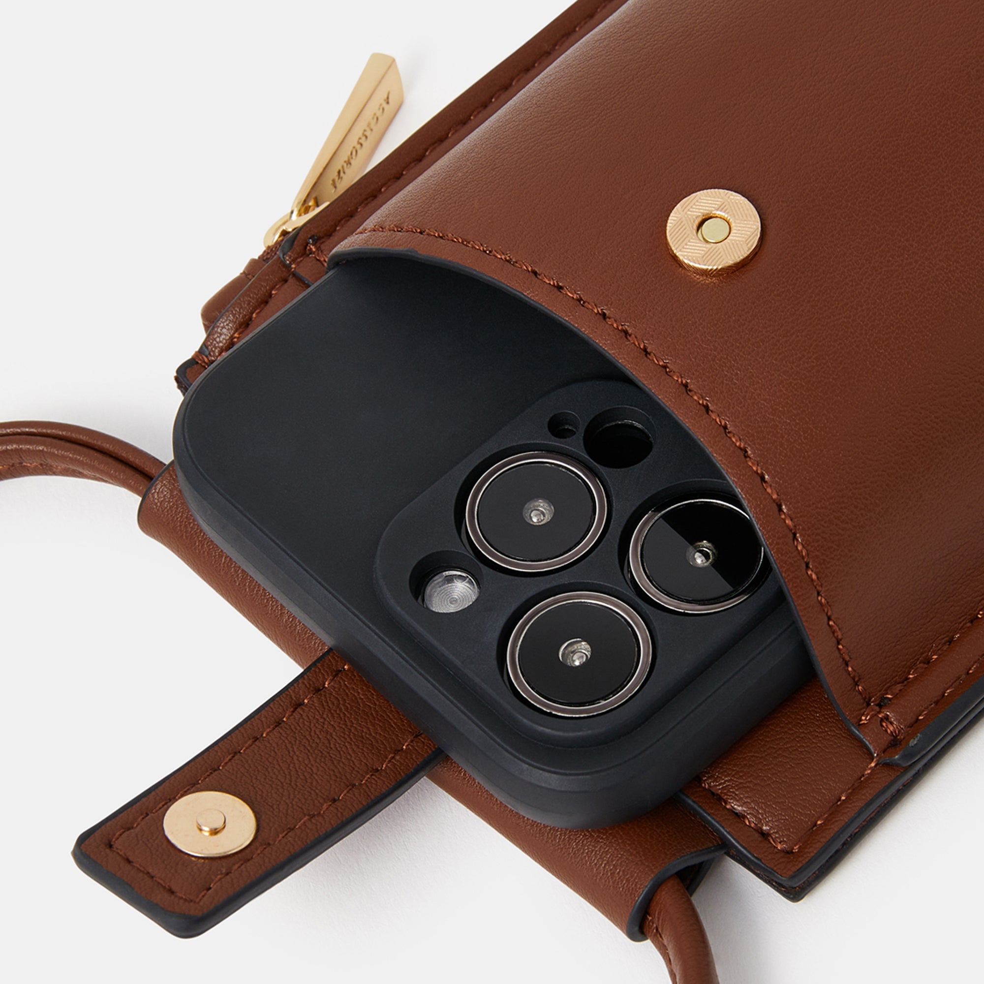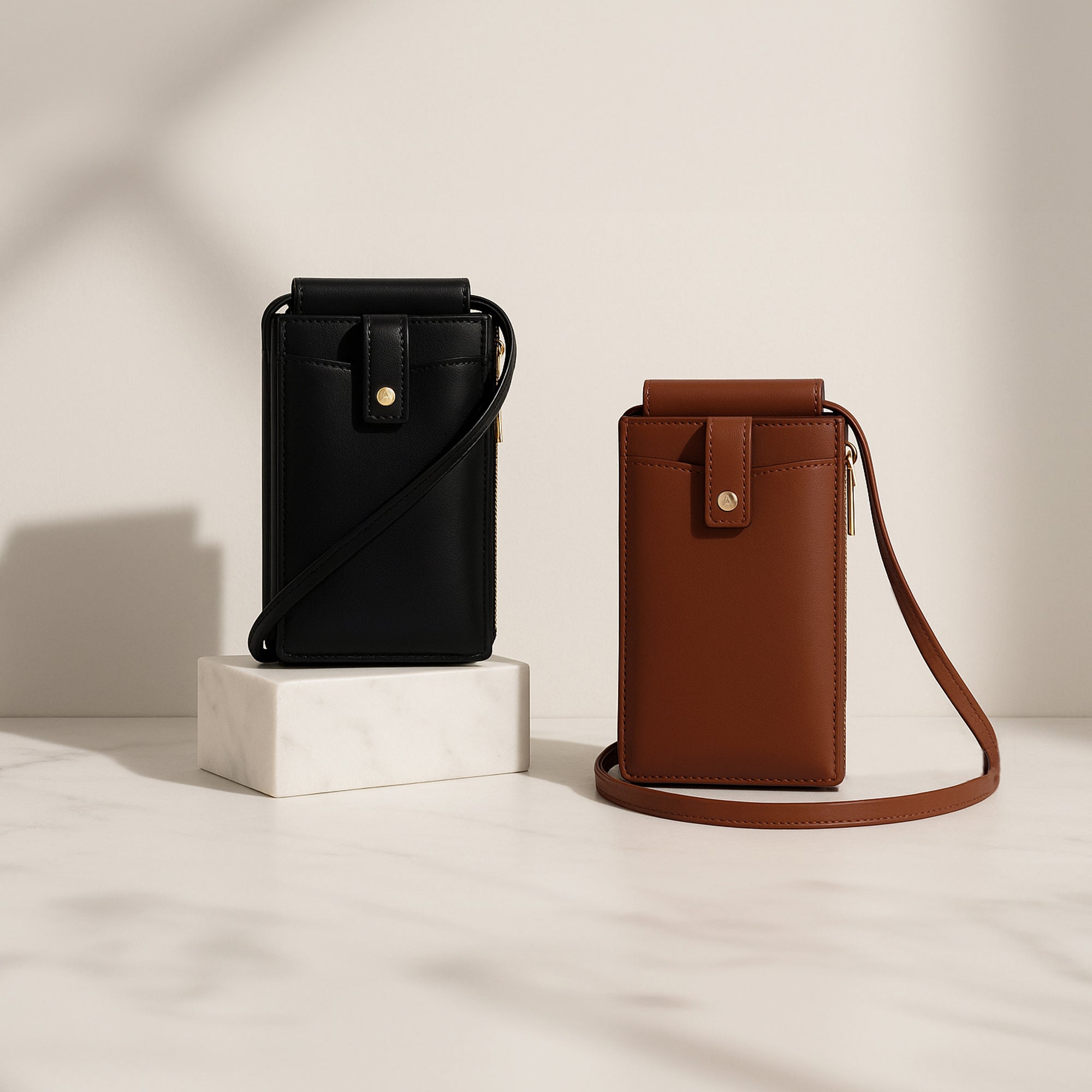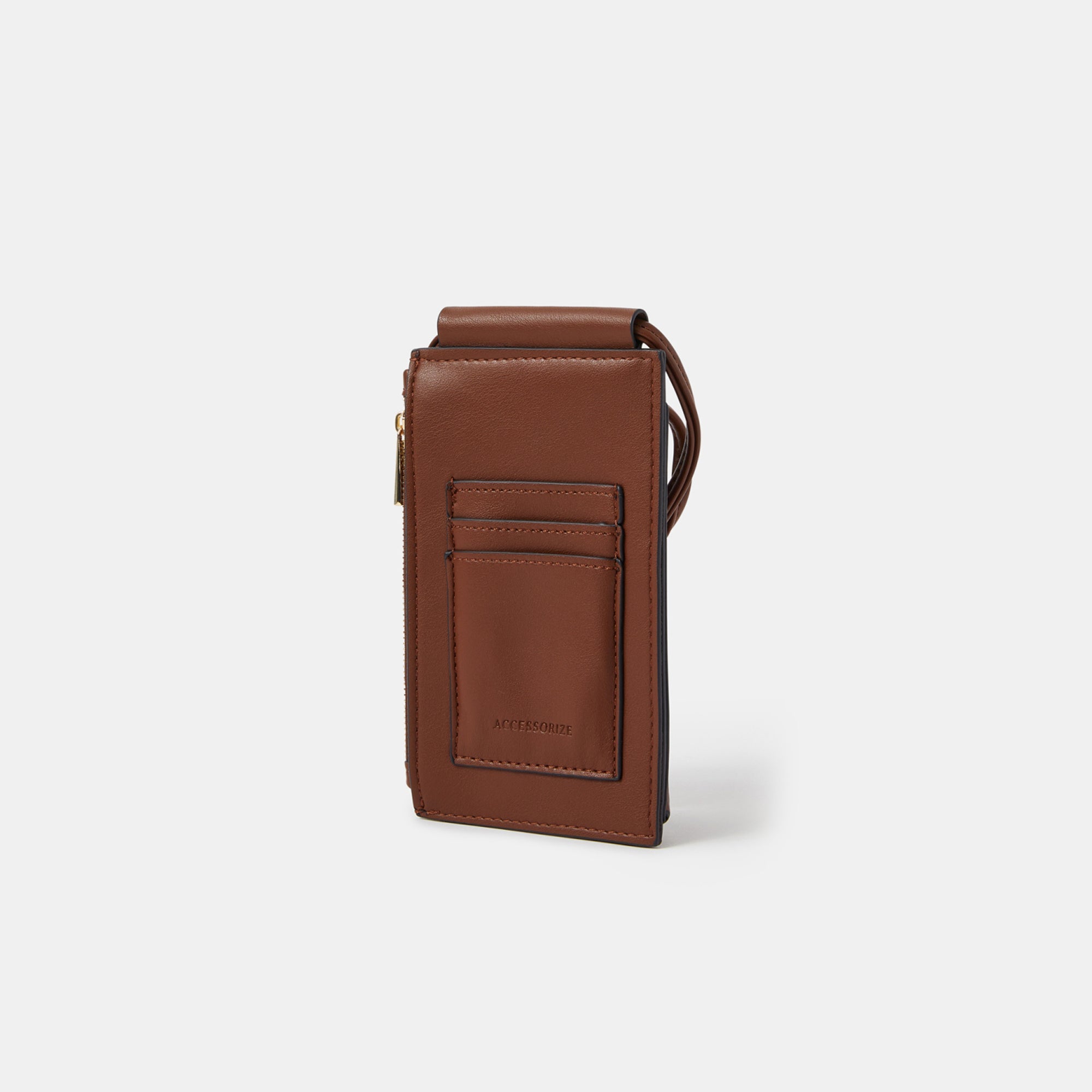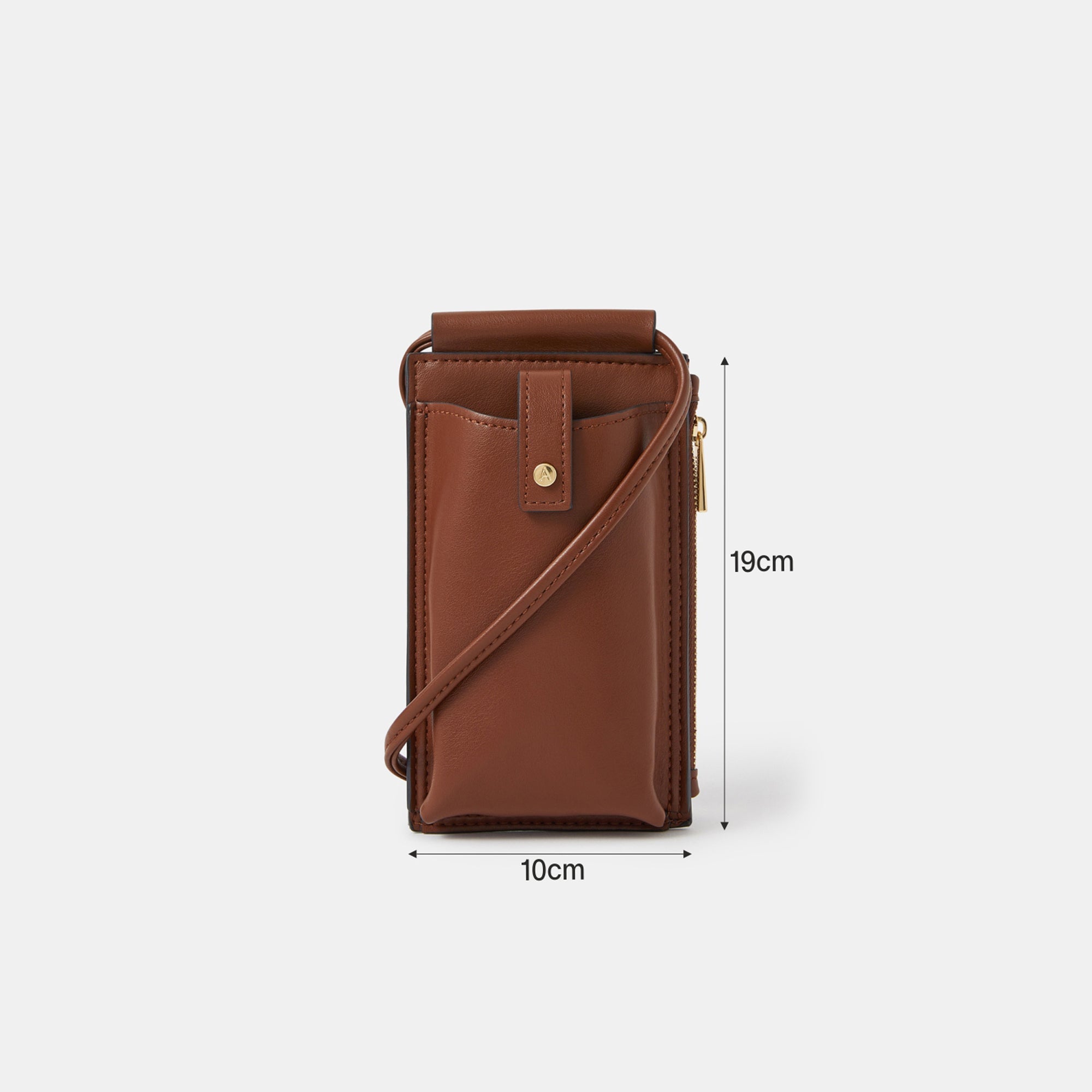 Stay hands-free and stylish with this Tab Pocket Phone Bag in tan. Made from smooth faux leather, it’s compact yet functional with a magnetic tab closure to keep your phone safe, a handy side zip compartment for coins or keys, and practical card slots on the back. Whether you’re running errands or heading out for coffee, this bag adds effortless charm to your everyday look.