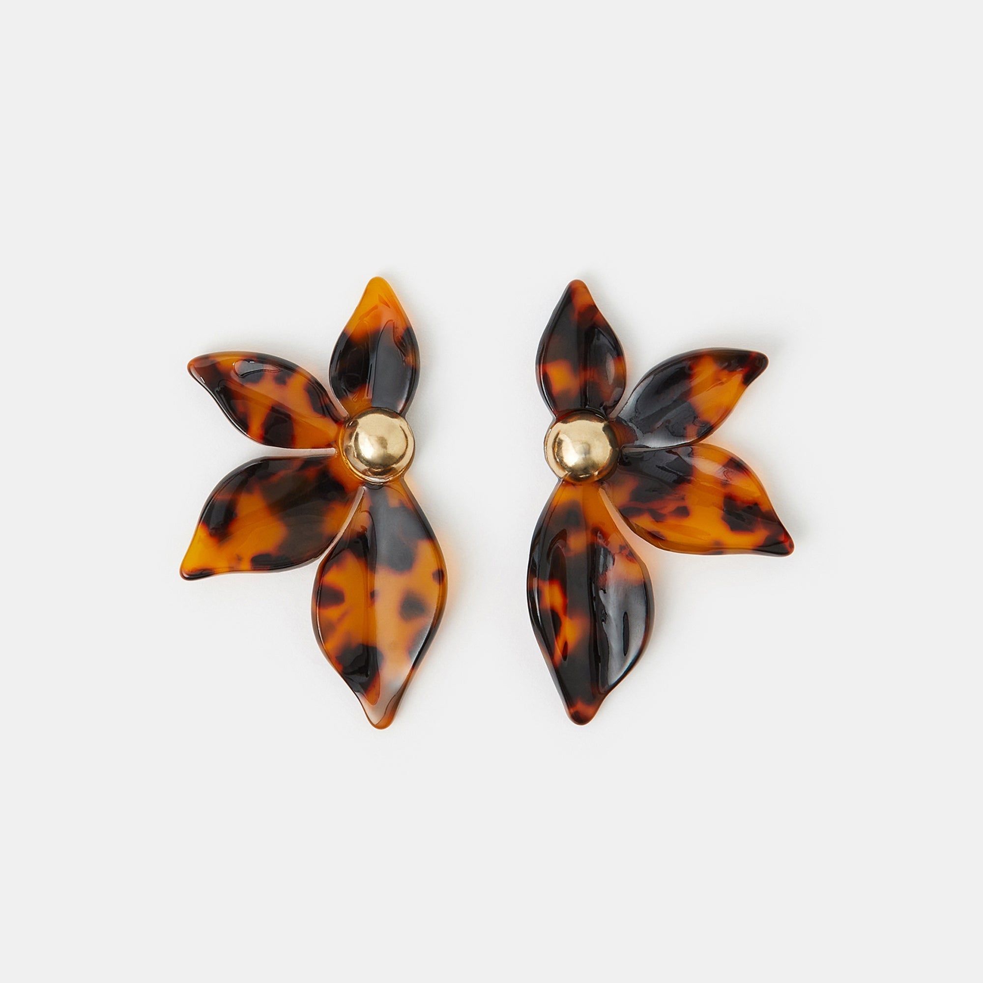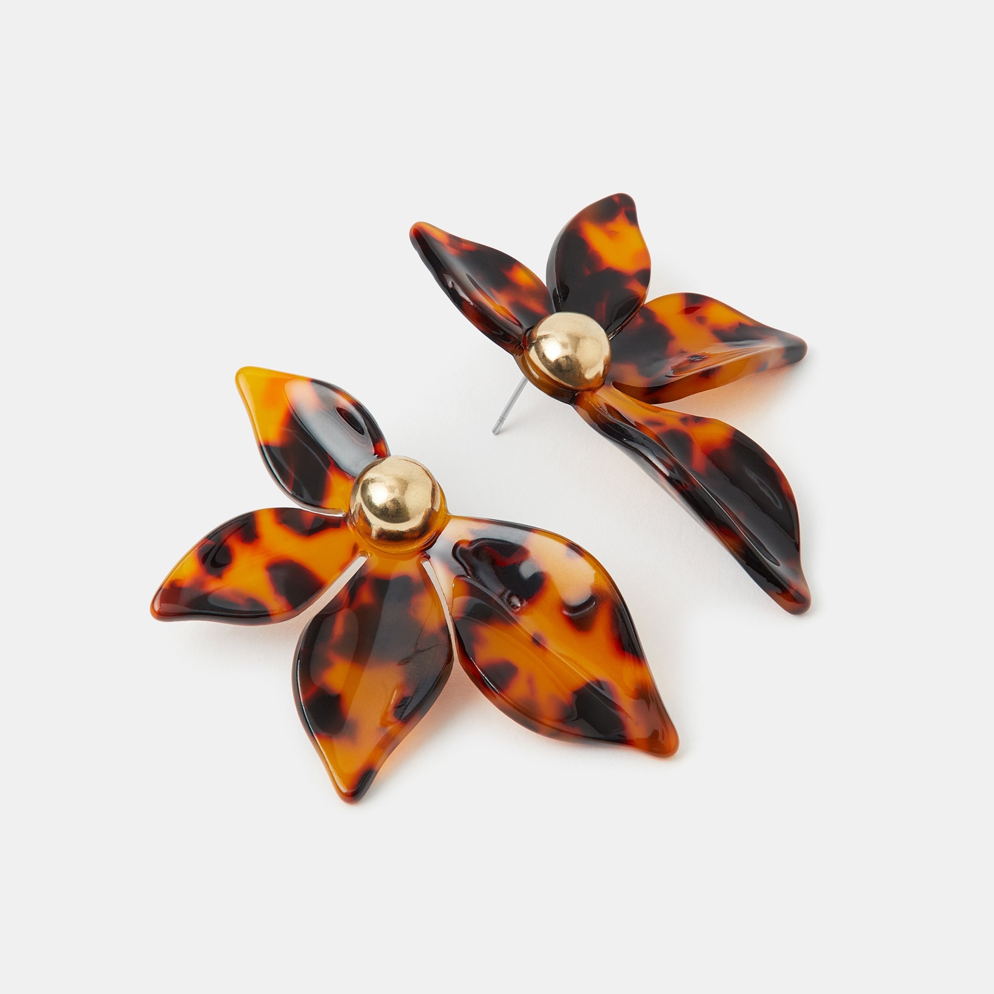 It's time to make a statement. Designed in a tort resin finish and boasting a unique flower design, these earrings feature a gold stud in the centre.