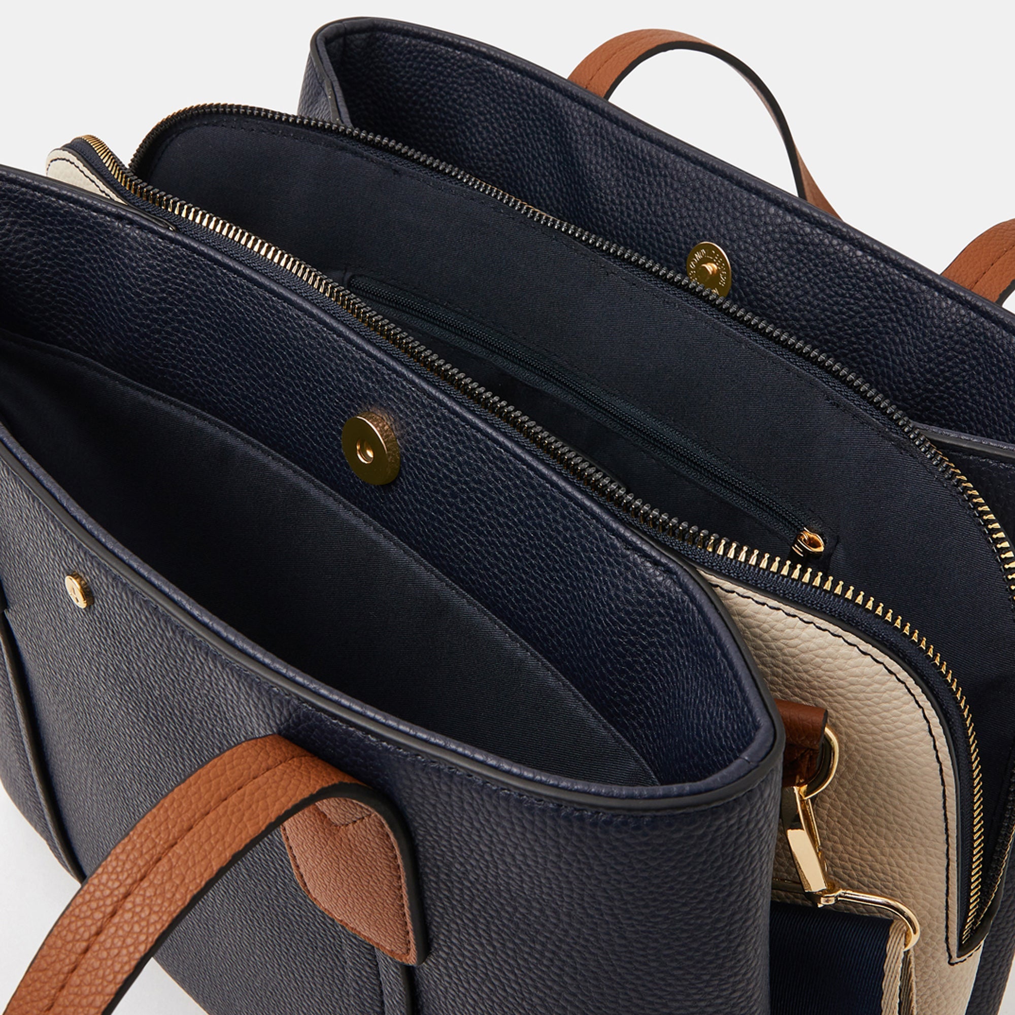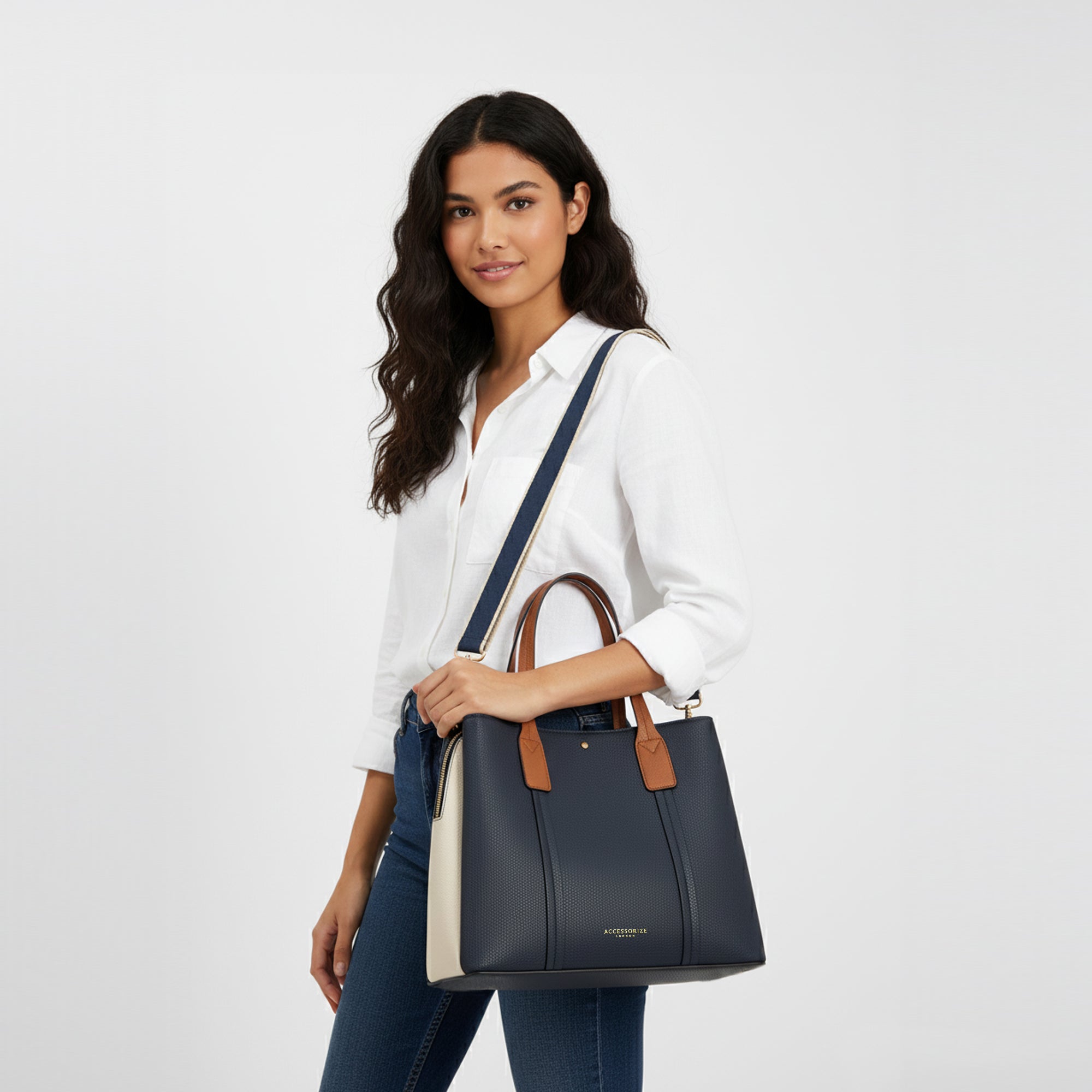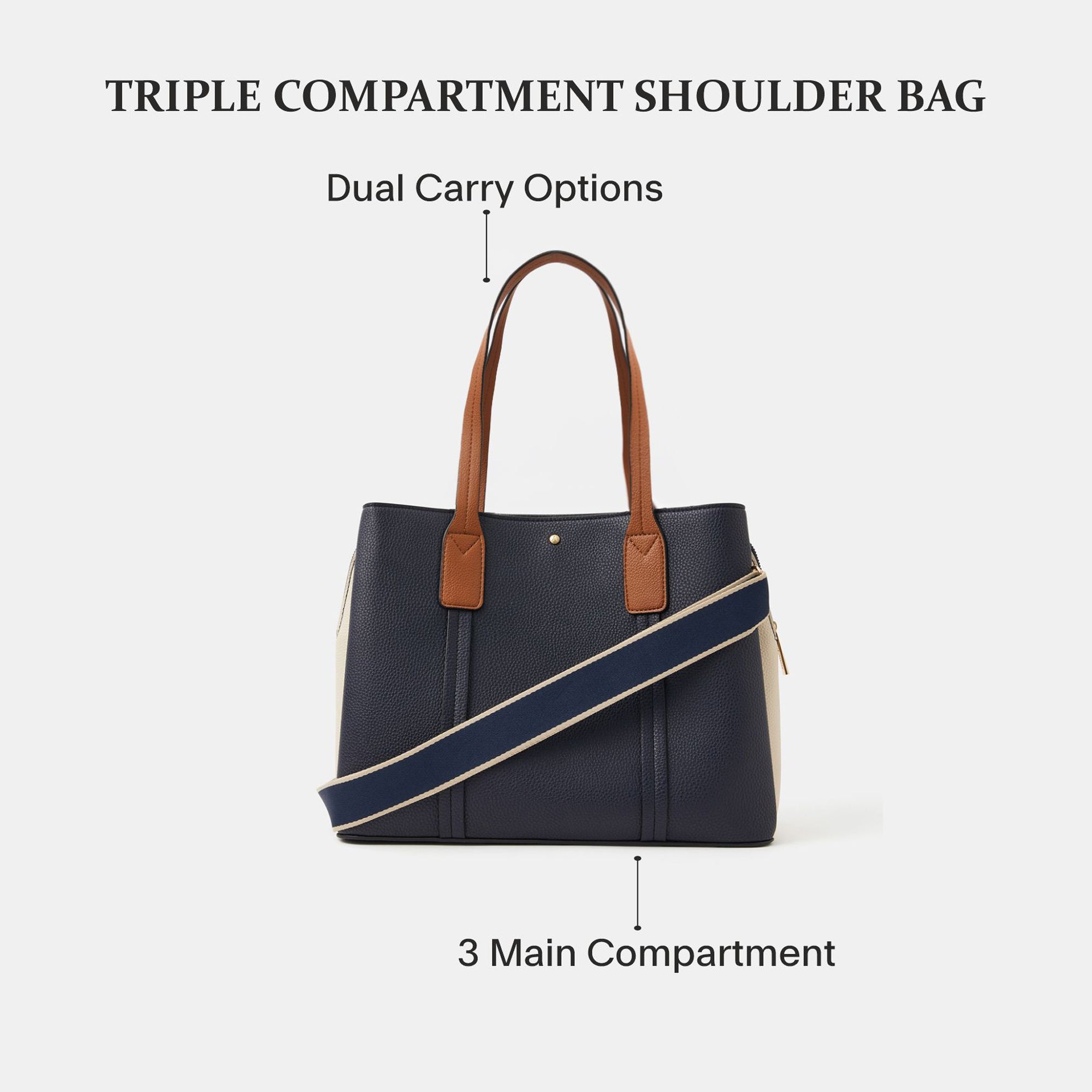 Upgrade your everyday style with this Triple Compartment Shoulder Bag – where elegance meets practicality. Designed in textured faux leather with contrast straps, it features three roomy compartments with zip and magnetic button closures for seamless organisation. The detachable webbing strap adds a modern twist, giving you the choice between classic shoulder carry and hands-free styling. Perfect for workdays, weekend outings, or casual wear, this bag combines timeless design with versatile functionality.