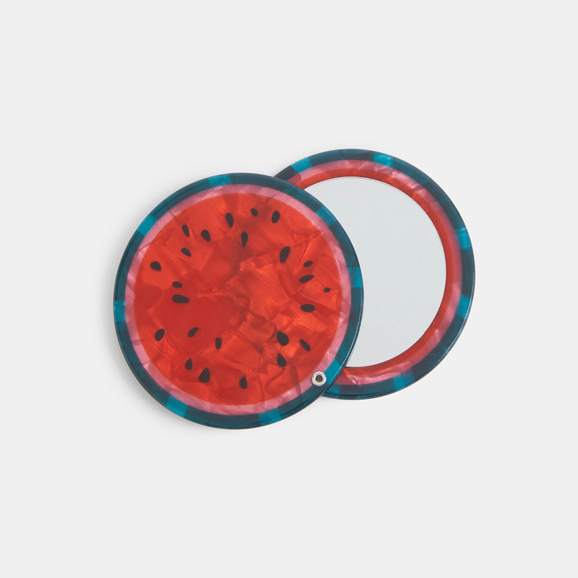 Shaped like a watermelon slice in a dreamy resin finish, this compact mirror is an essential for your bag whenever you need to touch-up your makeup whilst out and about.