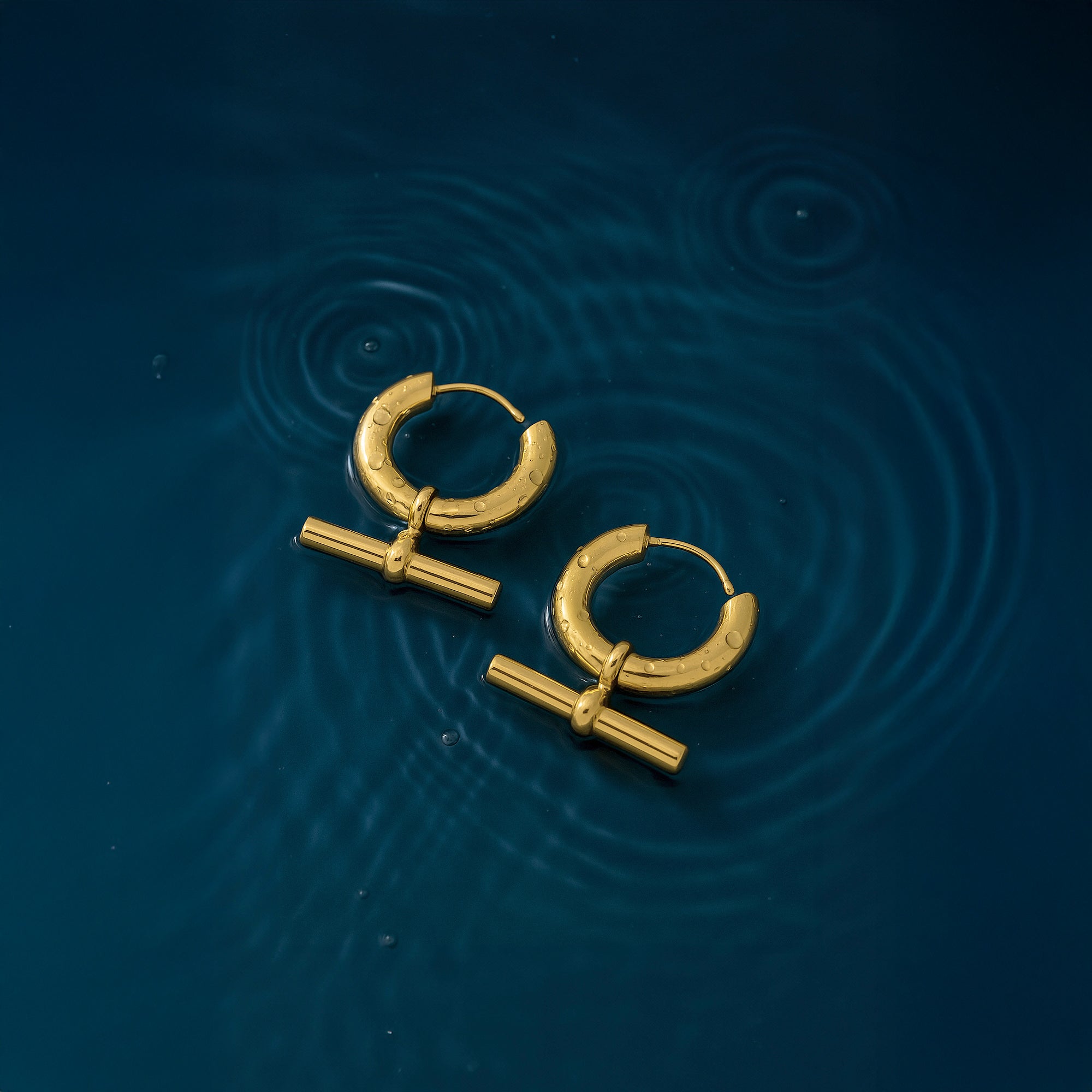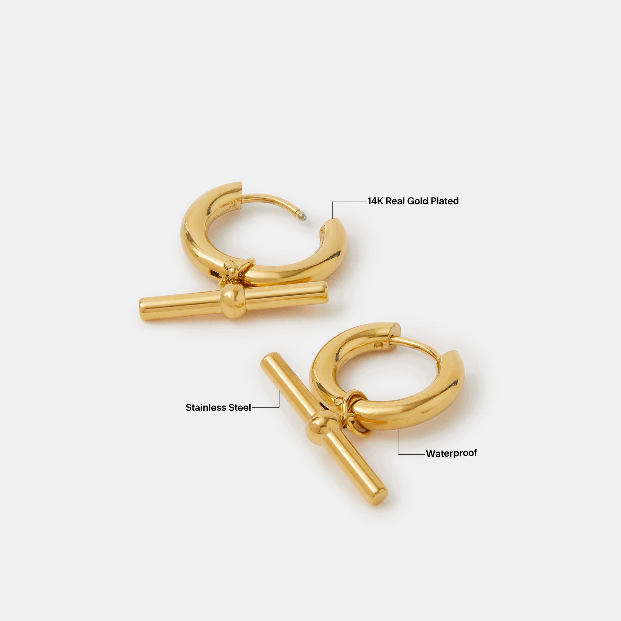 Waterproof Gold-Plated Accessorize Gold Tone Stainless Steel T-Bar Hoop Earrings