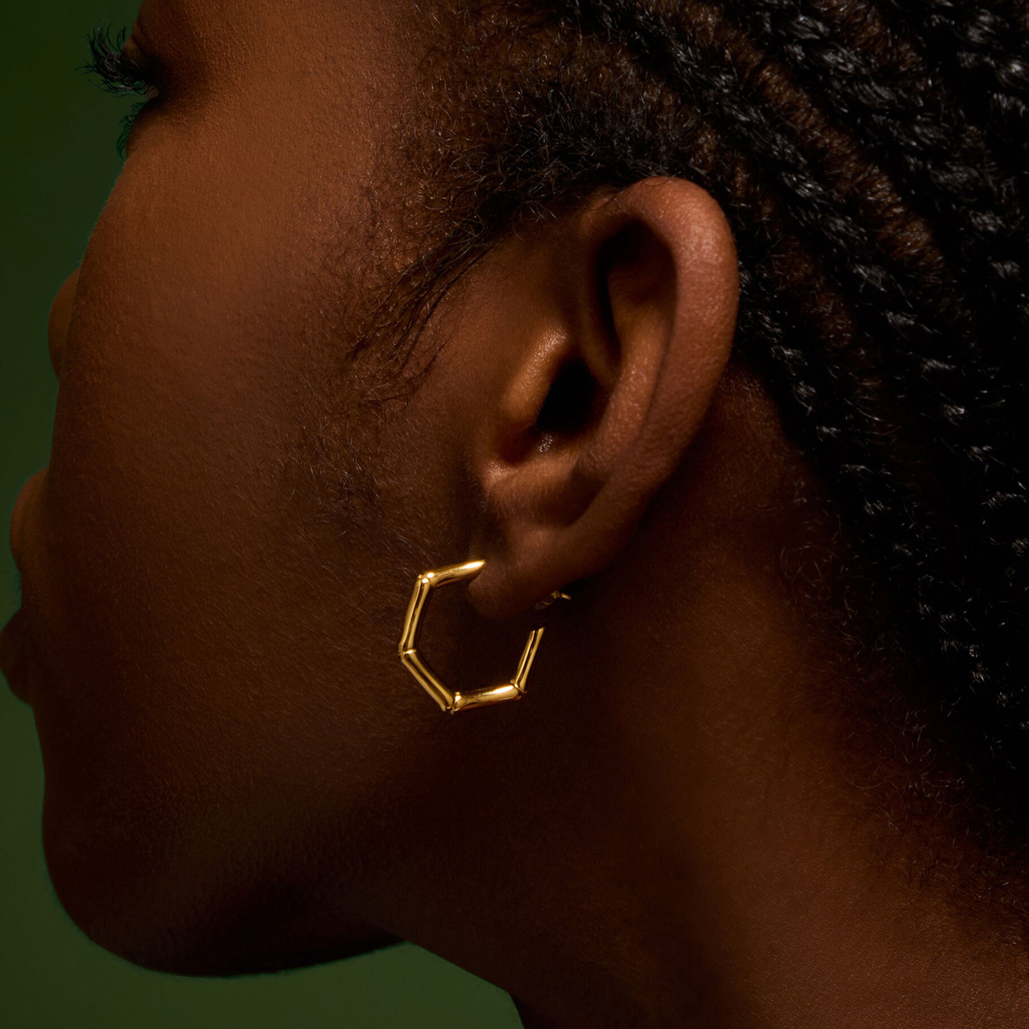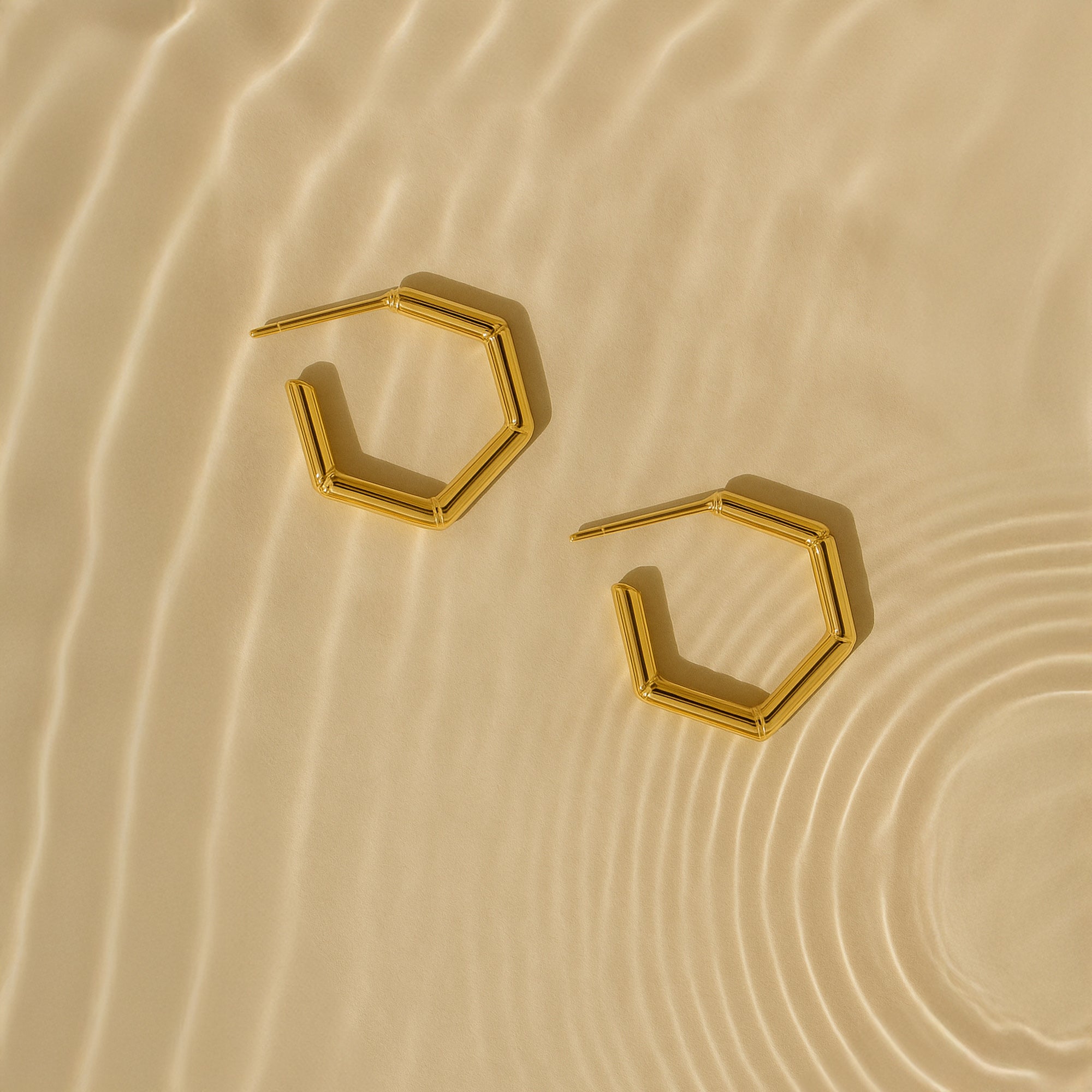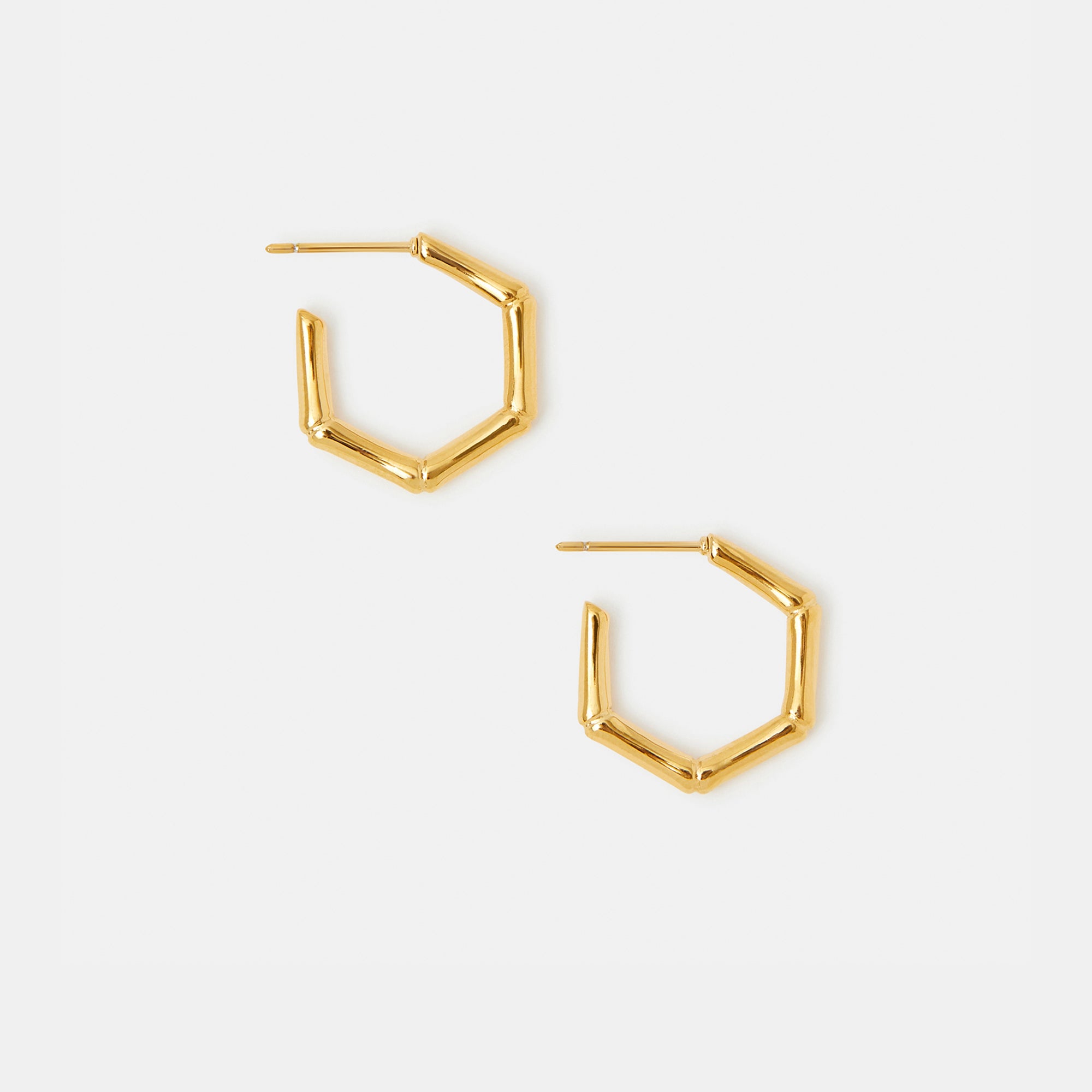 Add new dimensions to your jewellery box. Made from durable stainless steel in a sparkling gold tone, these hoops are inspired by the shape of bamboo shoots with a hexagonal finish.