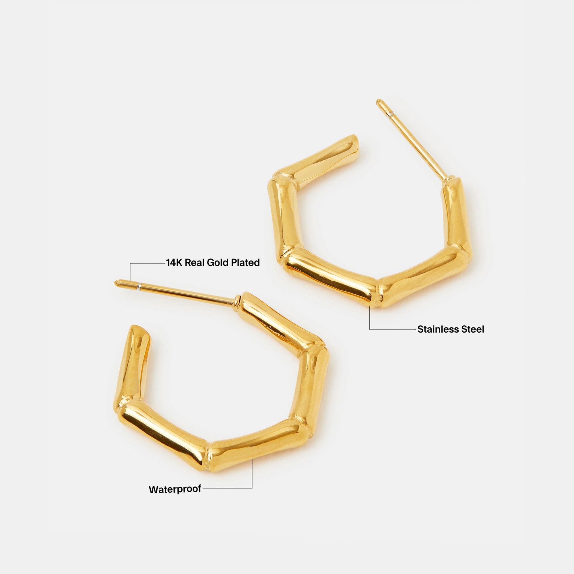 Waterproof Gold-Plated Stainless Steel Bamboo Hoop Earrings