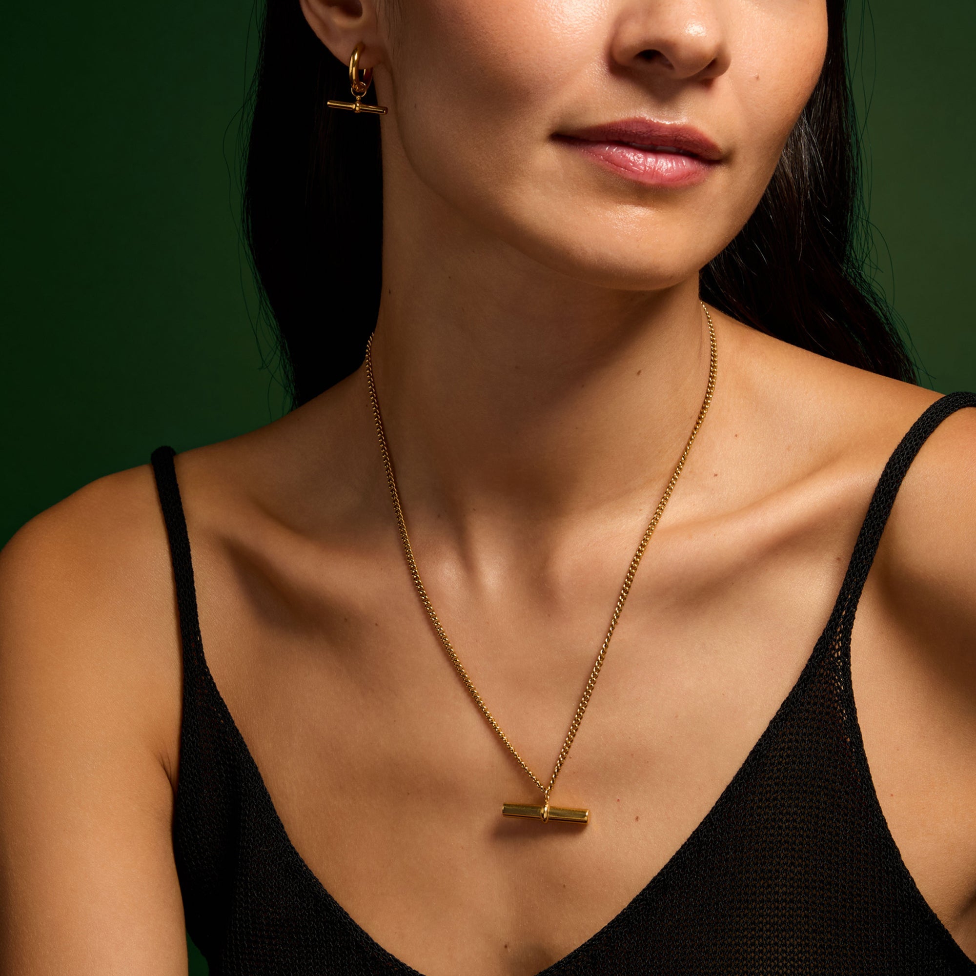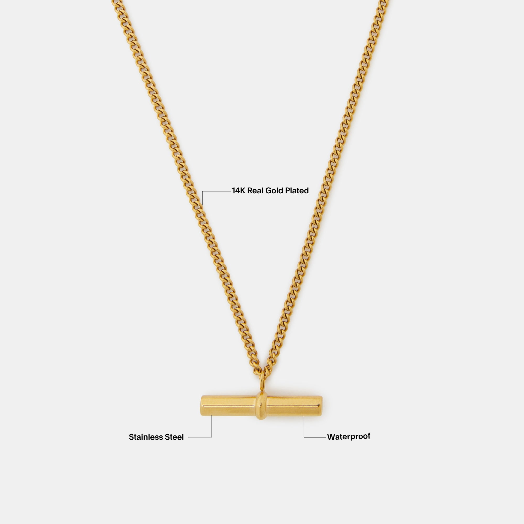 Waterproof Gold-Plated Stainless Steel T-Bar Pendant Necklace