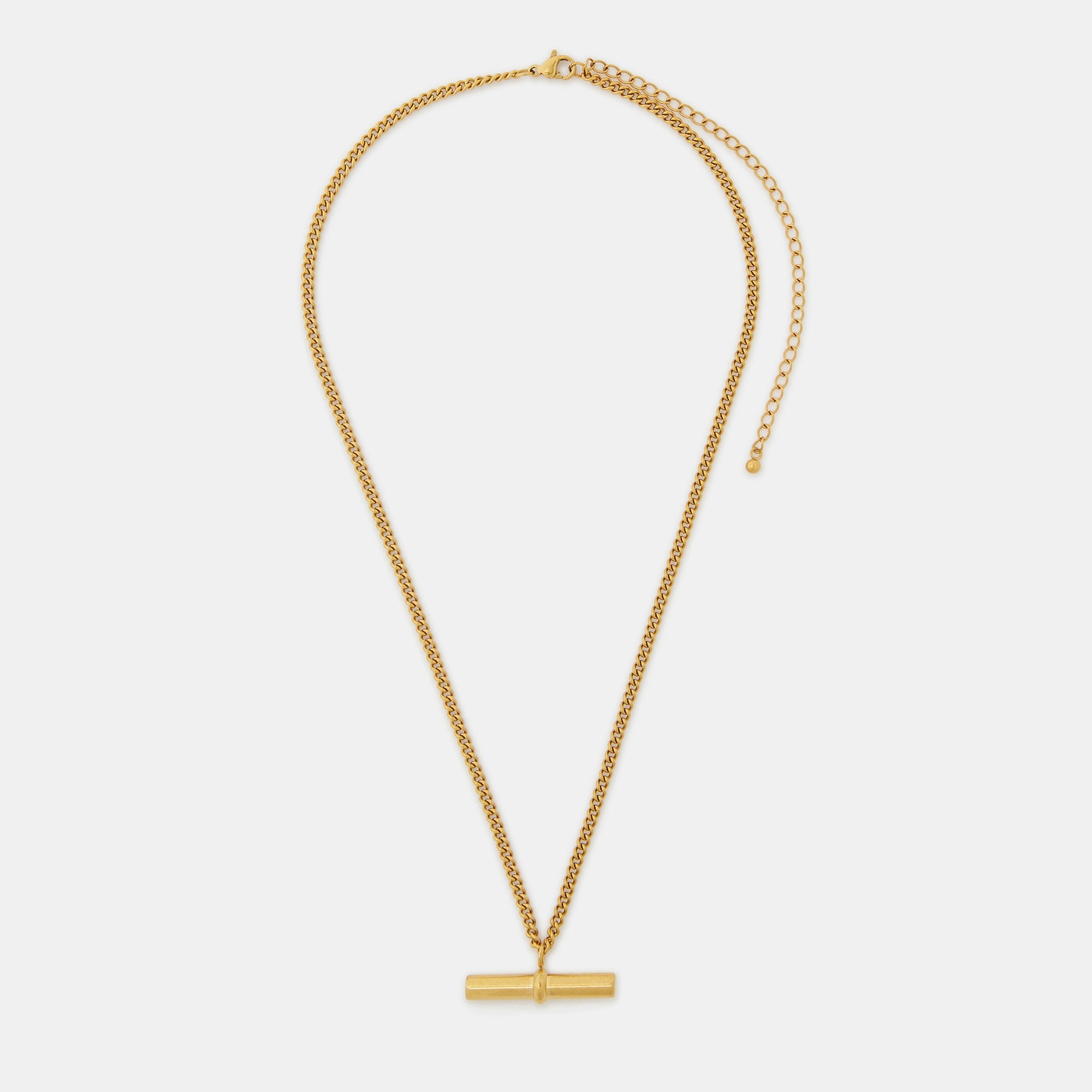 Putting the T in timeless accessories. Made from durable stainless steel with a gold-tone finish, this classic chain showcases a T-bar pendant for a cool, contemporary feel. Features a lobster clasp fastening and extender to style at a length that looks good on its own, or layered with other necklaces.