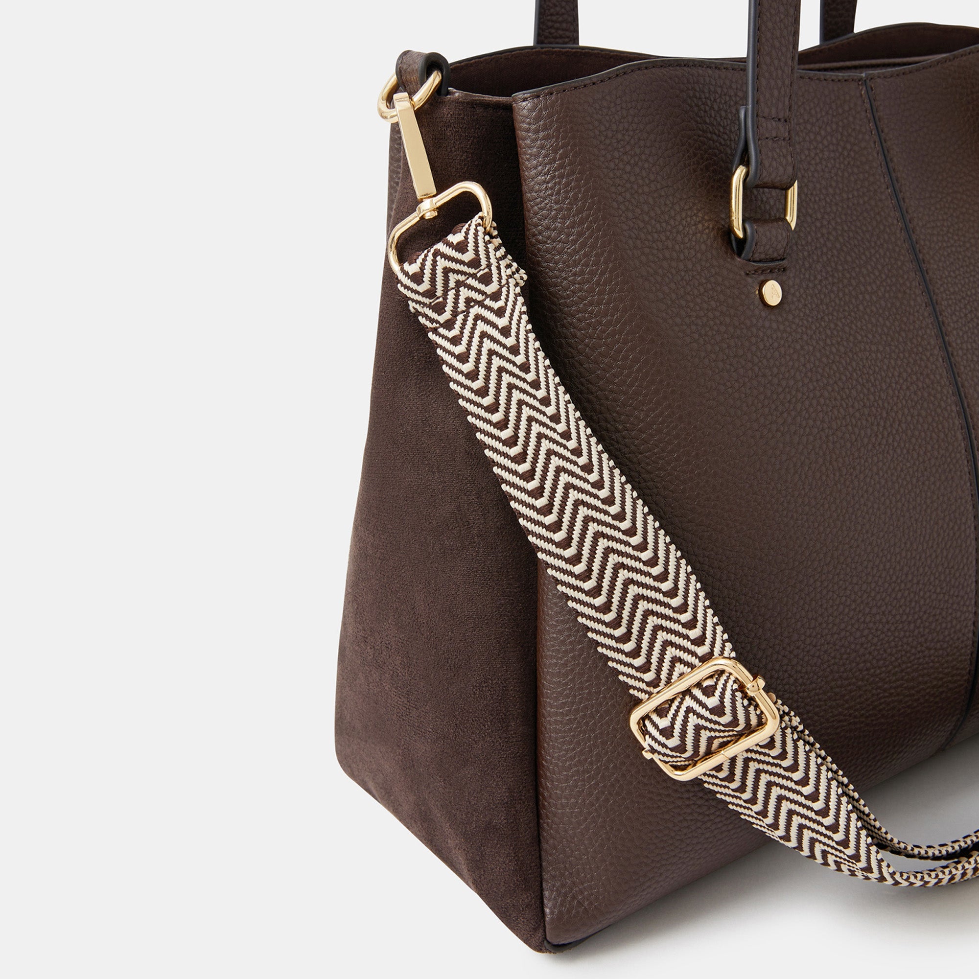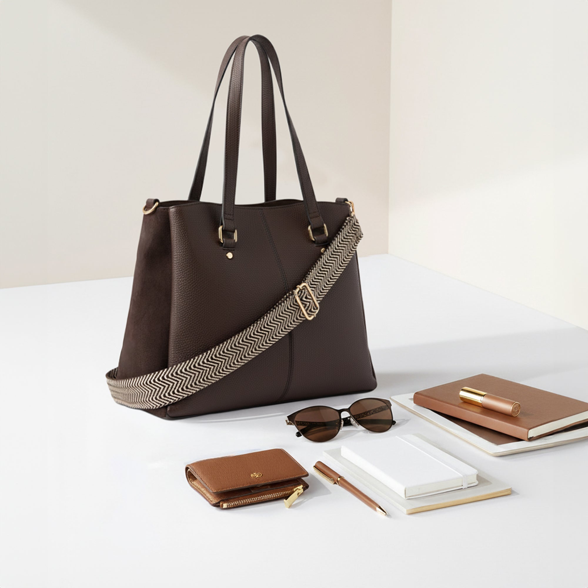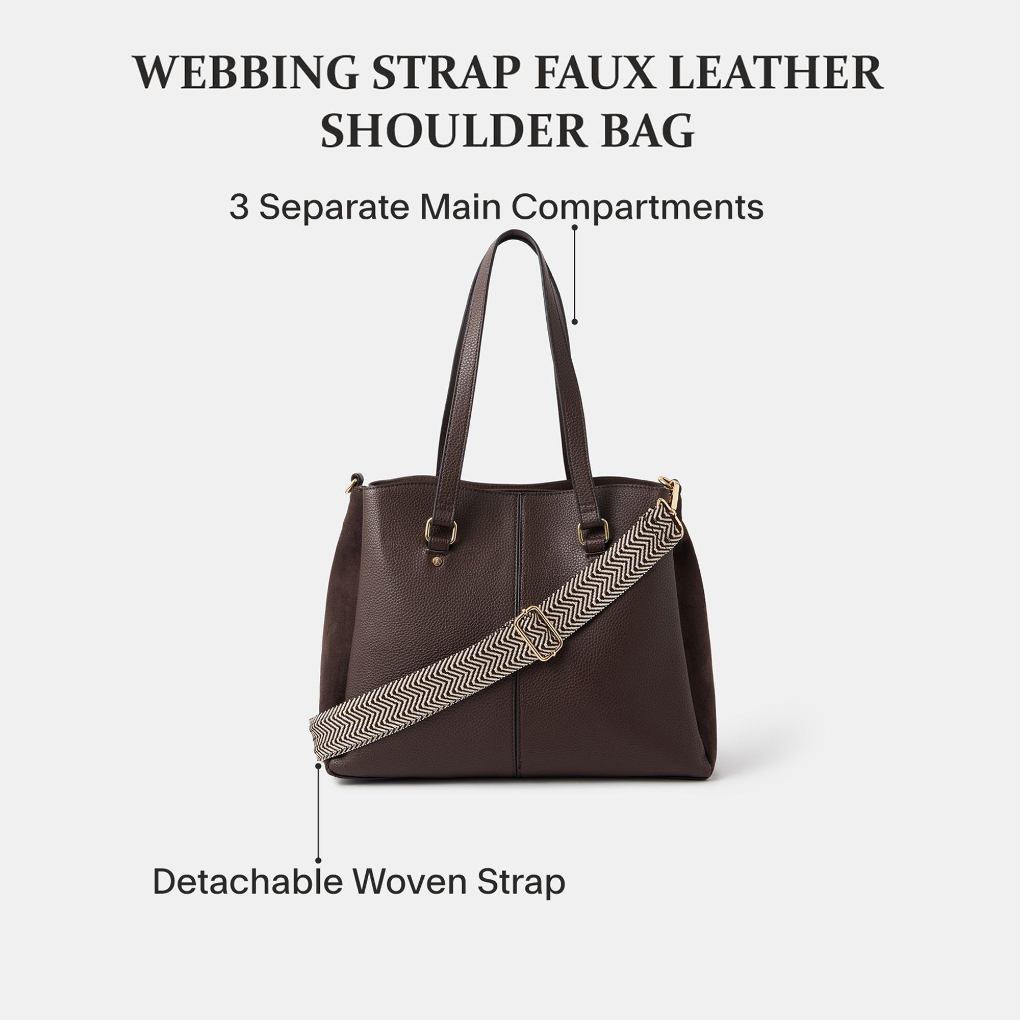 Upgrade your everyday accessory game with this Webbing Strap Faux Leather Shoulder Bag. Designed in textured faux leather with a structured silhouette, it features double top handles and a detachable webbing strap for versatile styling. Spacious and functional with multiple compartments, it’s the perfect companion for office, travel, or daily outings while adding a chic touch to your look.