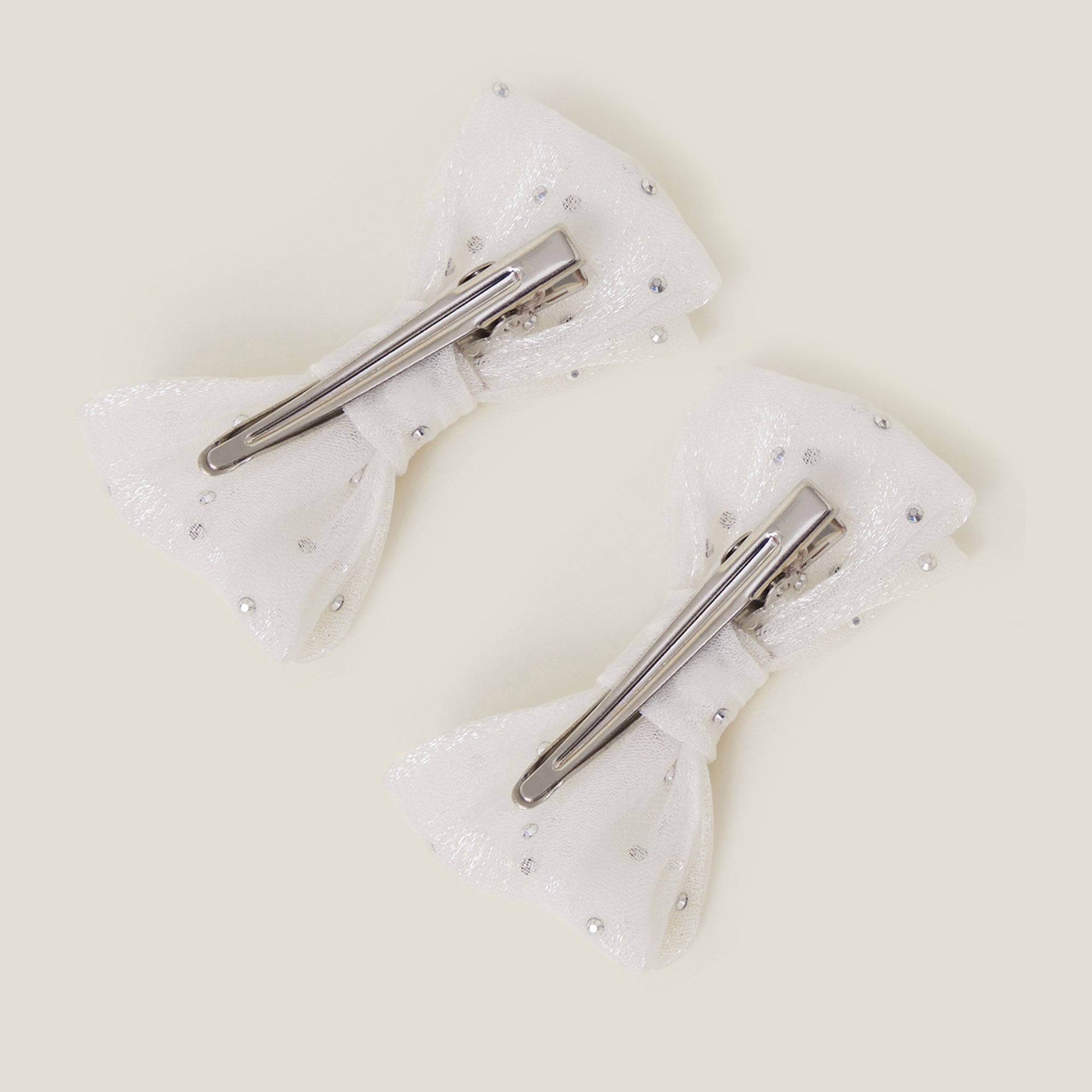 White 2-Pack Sparkle Bow Hair Clips Ivory