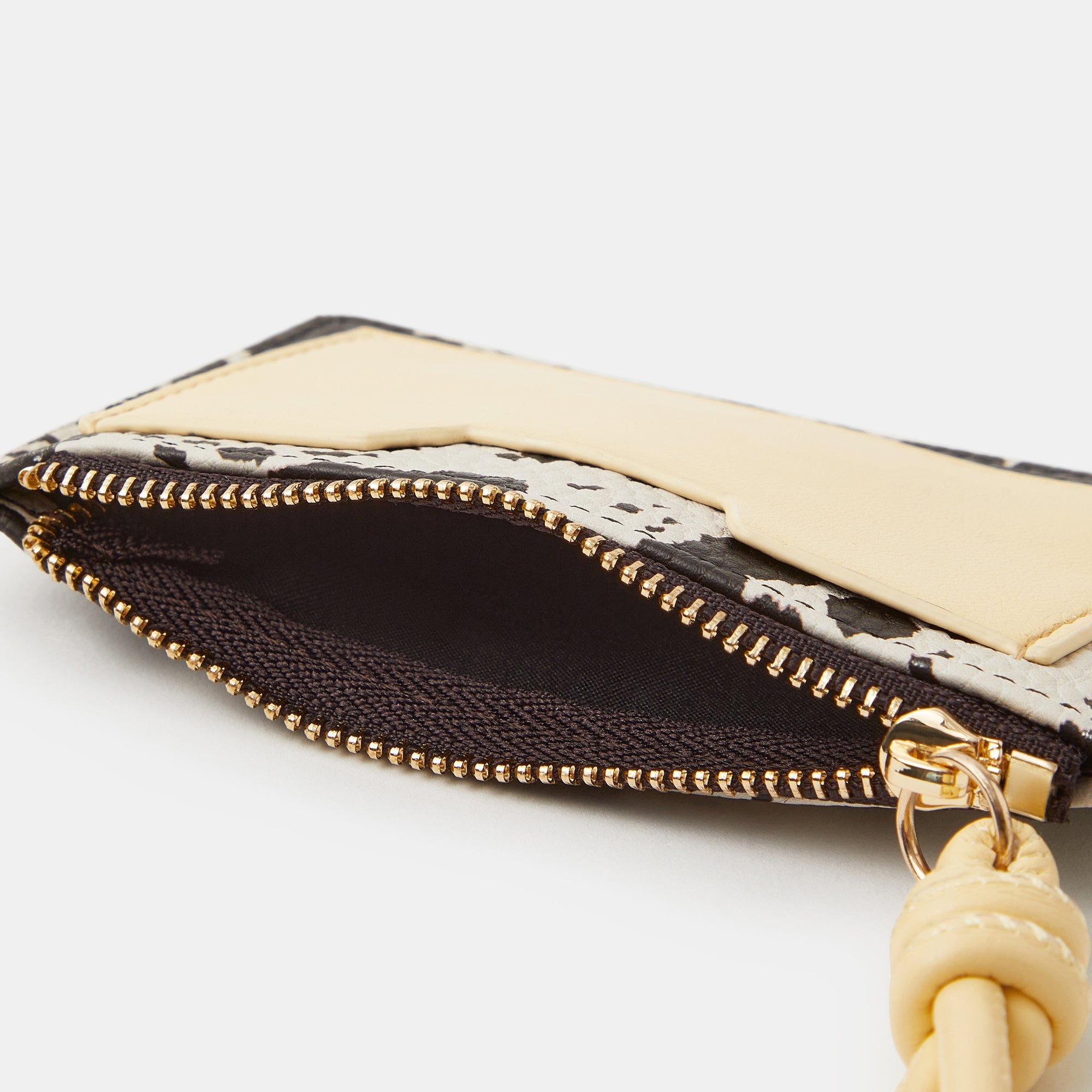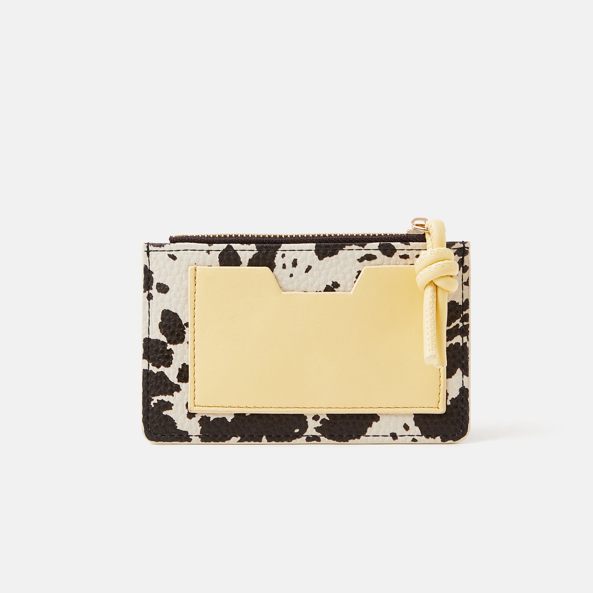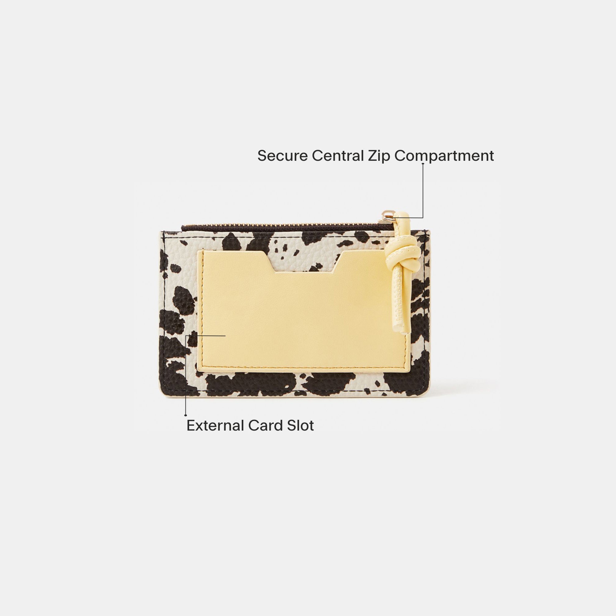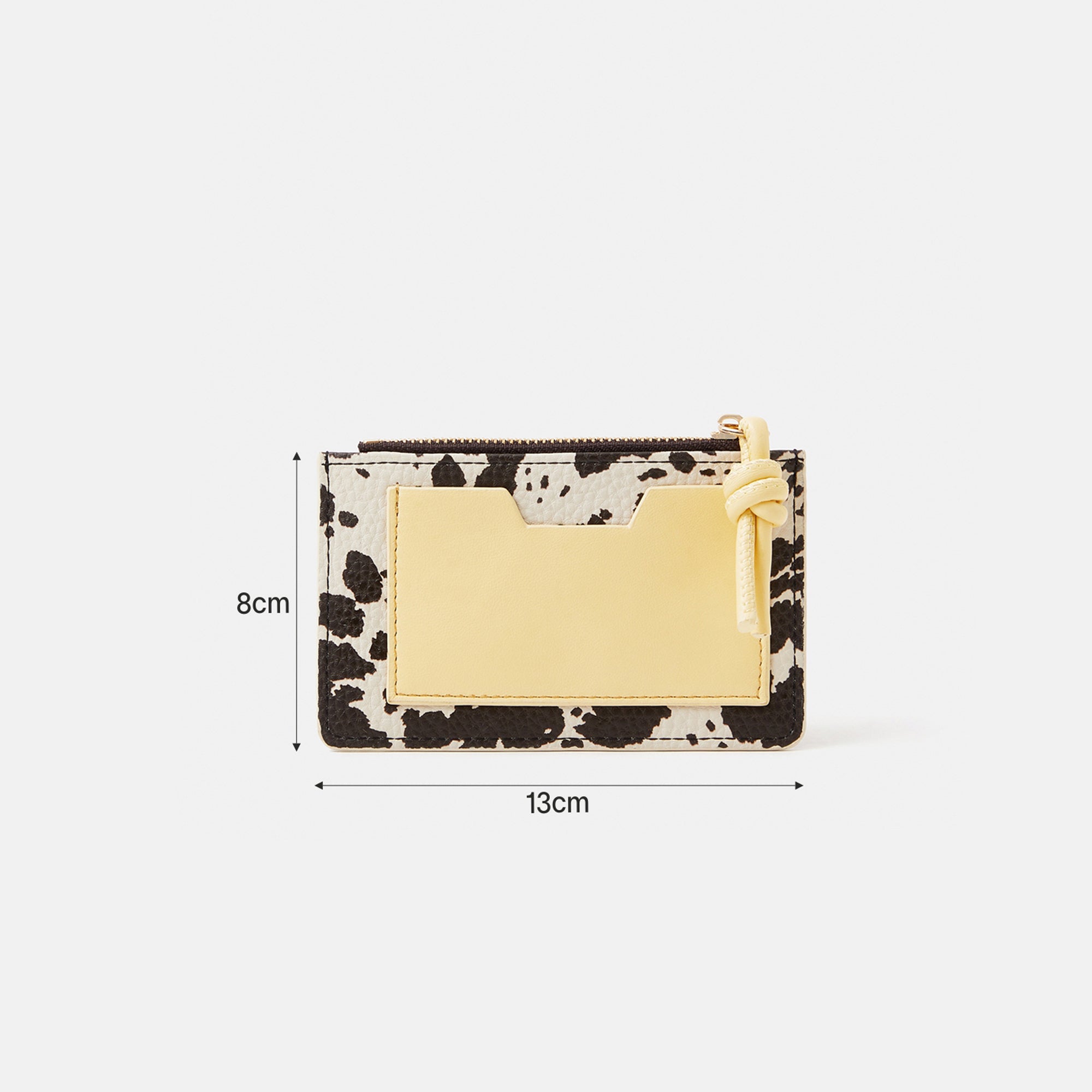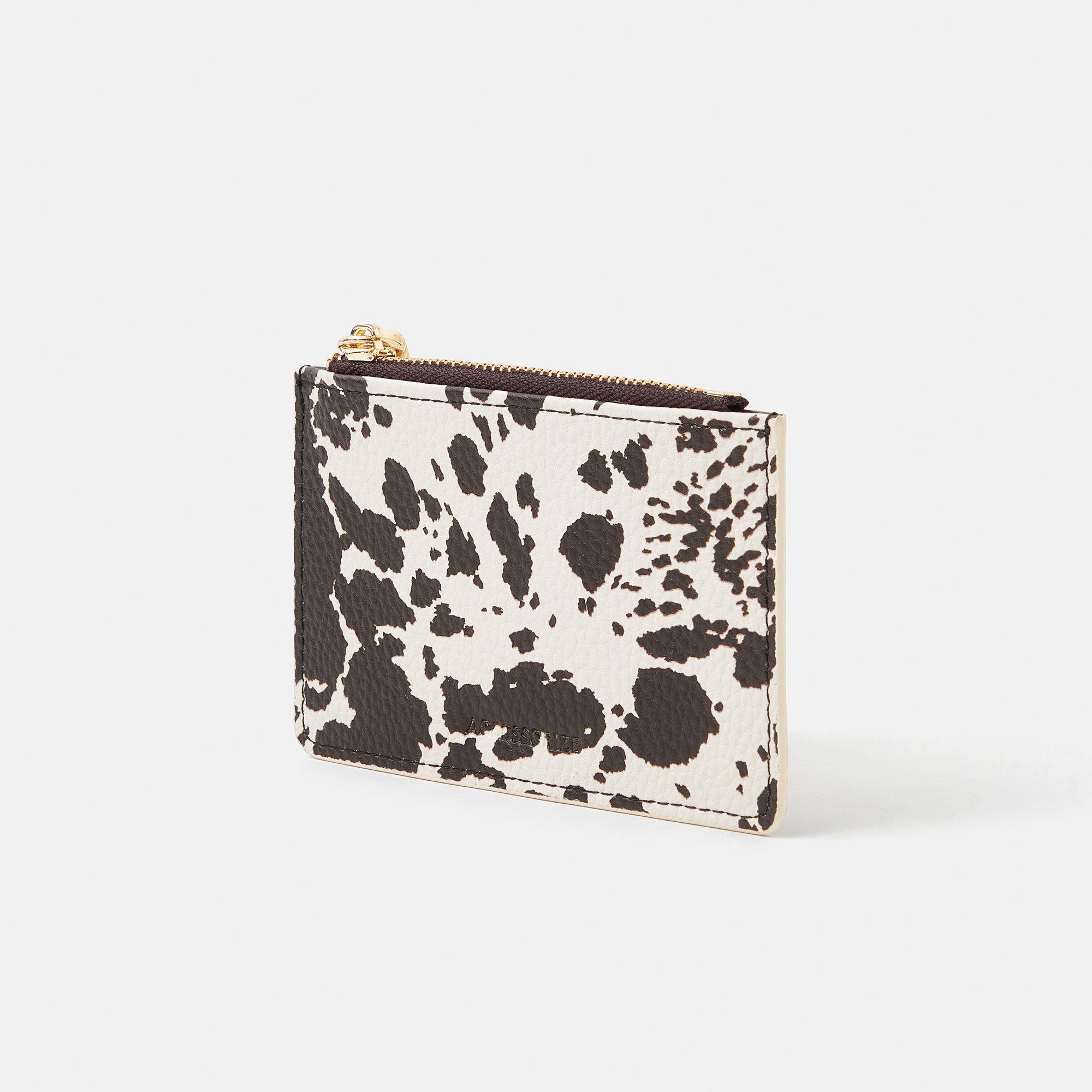 Moo-ving your essentials in style. Made in faux leather with a cow print design, this card holder features a zip fastening and outer slip pocket.