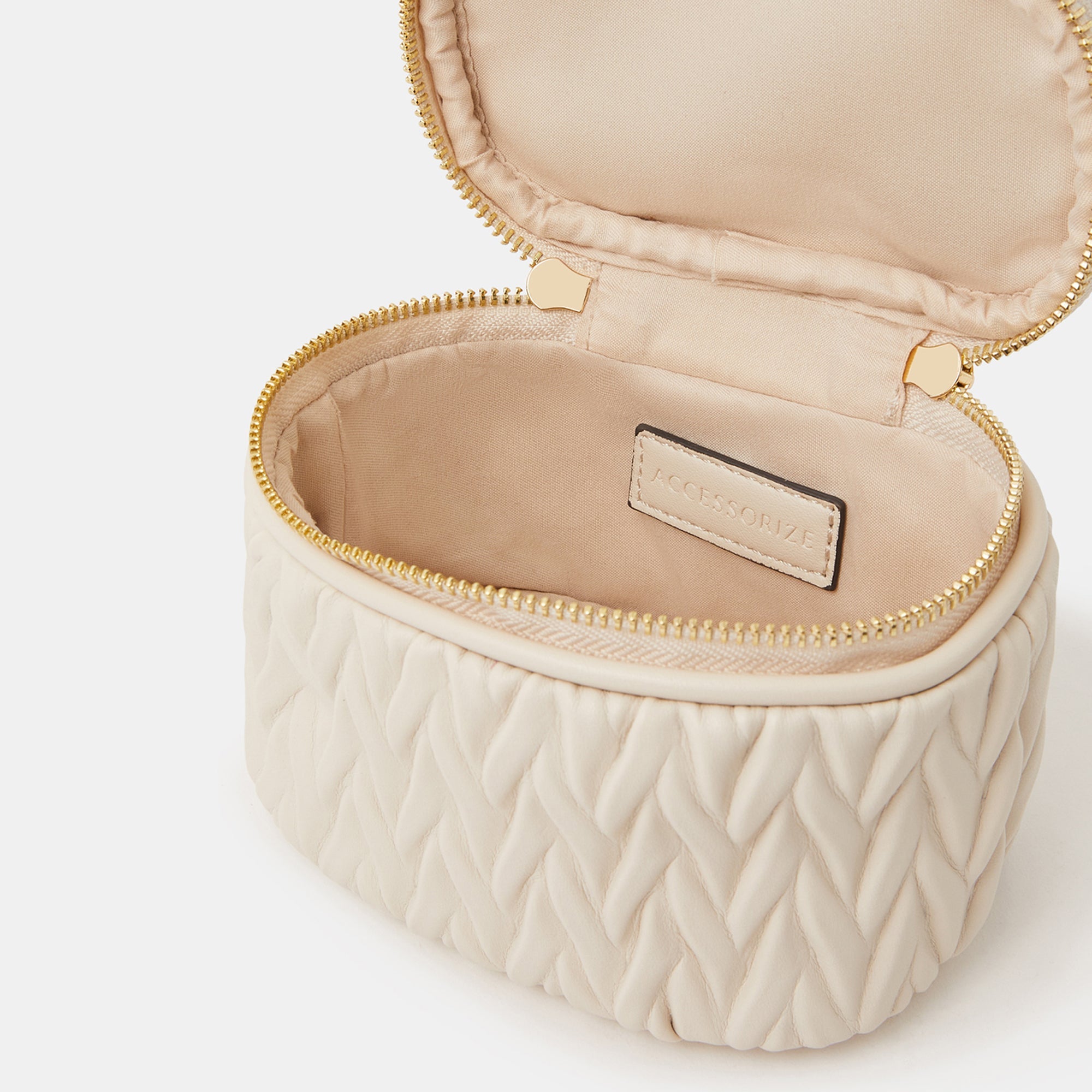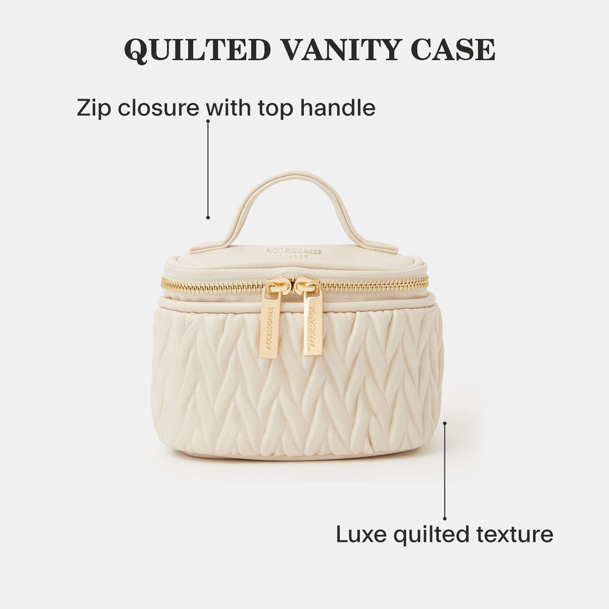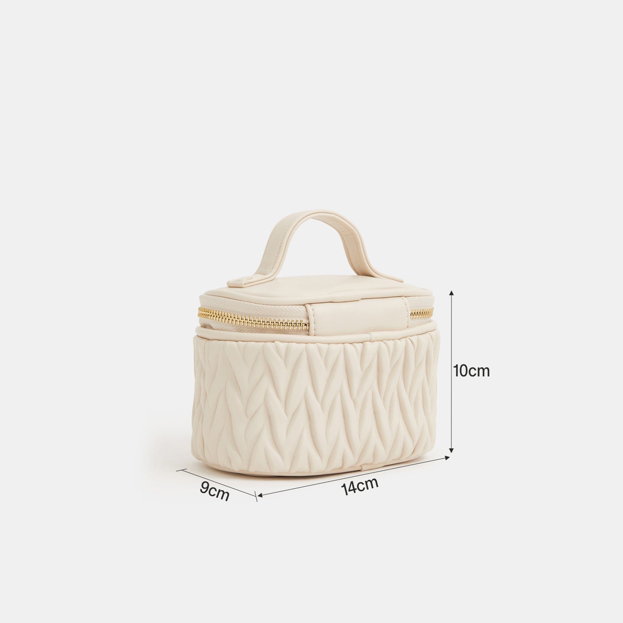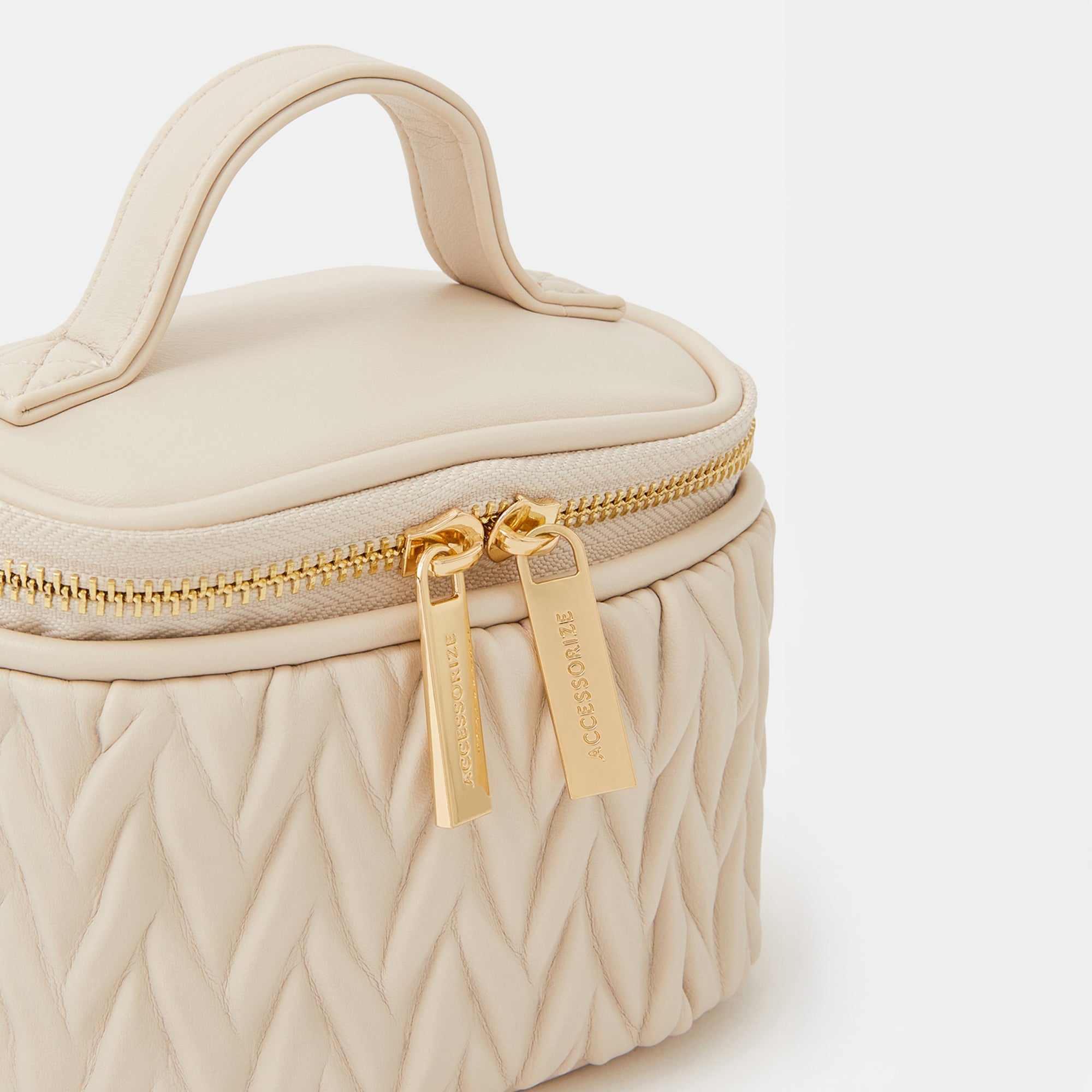 The perfect size for storing your everyday make up essentials, this miniature vanity case features a top zip fastening with a soft chevron quilted finish.